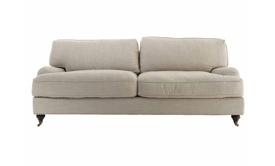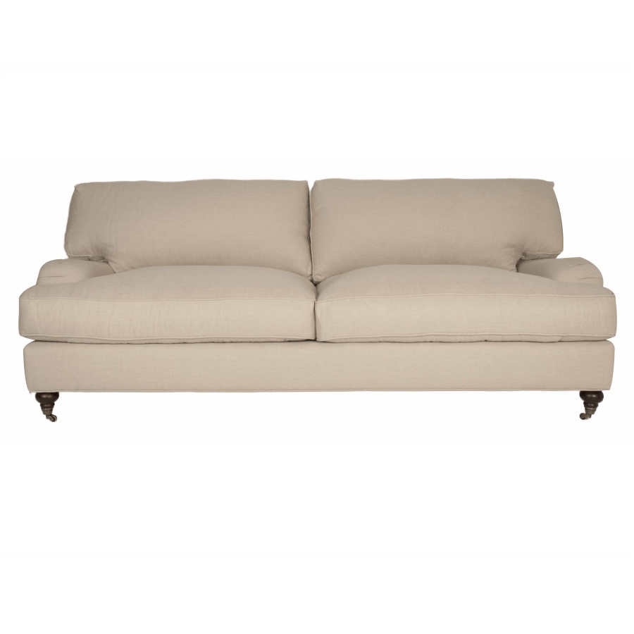 Bryce three-seater sofa from the collection of the Villa from the American manufacturer Orient Express Furniture. Made in the American style, this sofa will fit perfectly into modern interior living room. The frame and legs of the sofa are carved from solid wood, front legs on casters. Comfortable with a high back and soft recessed armrests, the sofa will provide a comfortable place for relaxing during the day. The backrest and seat are assembled from curly soft pillows, stitched on a contour. The armrests are finished in laid folds and stitched. The sofa is available in three color schemes: home color unbleached canvas with black legs, Sepia colors with legs in espresso and oatmeal color with espresso legs. Combining fashion trends of furniture design with innovation in the field of component materials, the Orient Express Furniture company strives to achieve high quality and exclusivity of each product. Choosing the company's products Orient Express Furniture, You choose stylish and comfortable furniture.