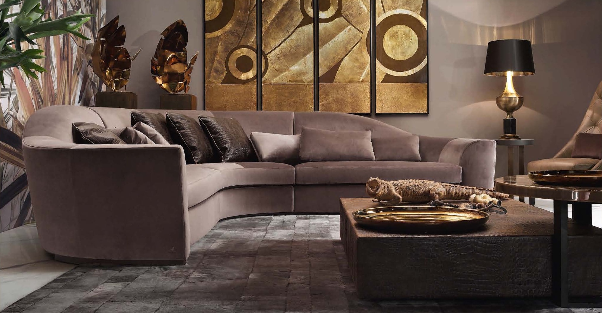 Corner sofa in modern style Edward from the Italian manufacturer Smania. The model has a frame made of natural wood and filled with polyurethane of different densities. Upholstery - leather or textile to choose from. The seat cushion is removable. Colours in stock. The sofa is accompanied by five decorative pillows. The Edward sofa is a magnificent piece of furniture that can decorate any room.