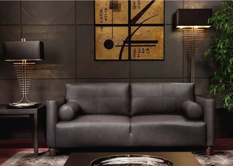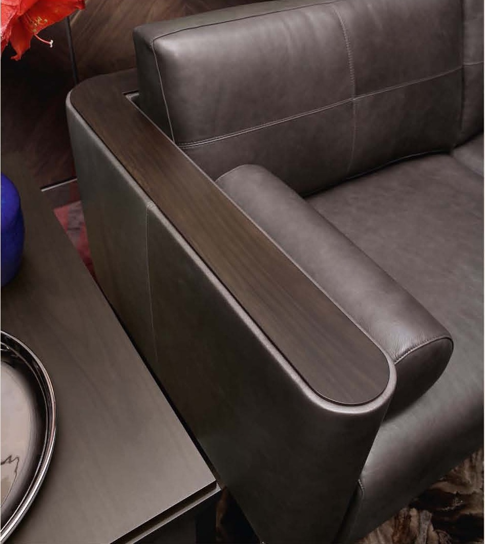Leather sofa in modern style Humphrey from the Italian manufacturer Smania. The model is made in modern style. Frame made of wood, legs made of beech, upholstered in leather. Armrests a choice of: leather or wood. Additionally included are two soft leather cushion. The Humphrey sofa with decorative cushions will decorate any interior style.