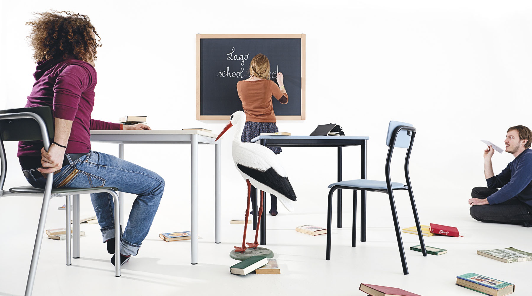 The School chair from Italian manufacturer Lago. Frame made of metal. The model was created from the desire to recall the unforgettable moments in our lives, those that are part of the history of each and every one of us, as in the first day of school. Eco-leather coated seat and back, found its ideal home not only in children's bedrooms, but works well in any room. Various colours from the range manufacturer.