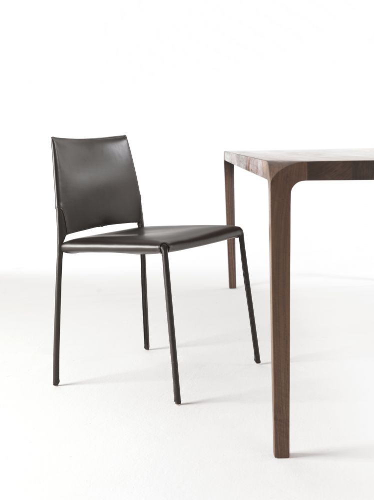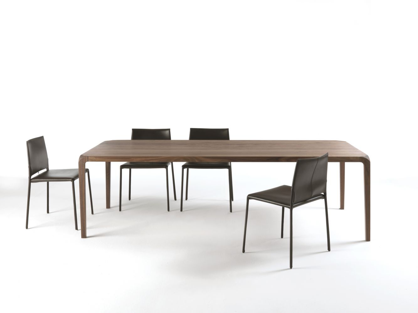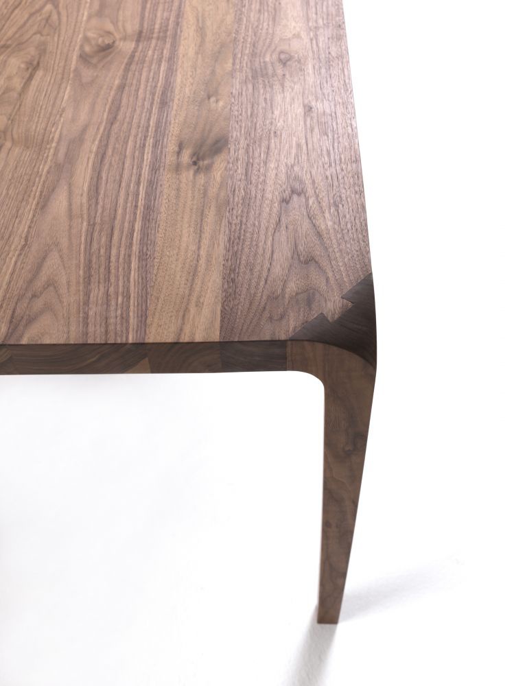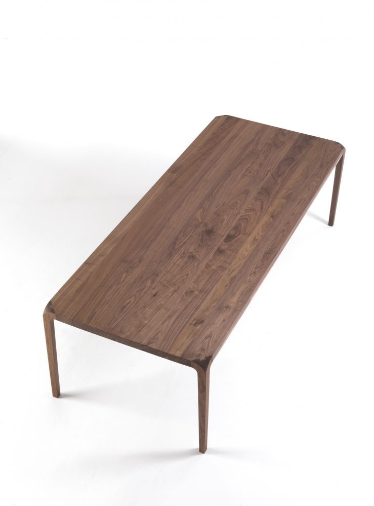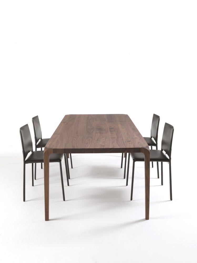 The Sleek table from the Italian manufacturer Riva 1920. The model is made entirely from solid wood and enhanced by a frame made of metal. Dining table with rectangular top available in all wood species according to the catalogue company.