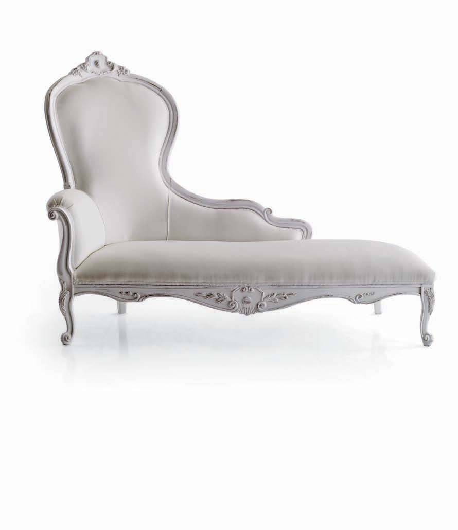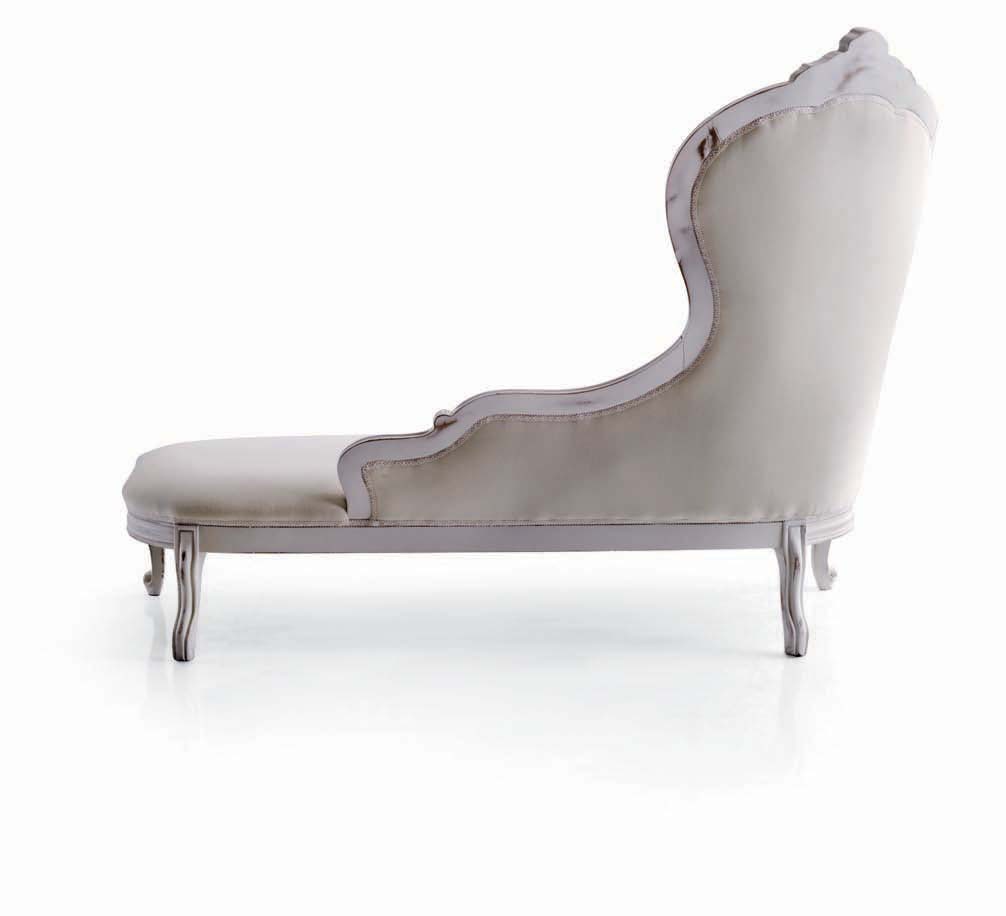 Chaise longue I-Sofa from Italian manufacturer Moda. Elegant and exclusive model with a high back, smooth curves in the Rococo style. Frame made of carved solid beech wood, white varnish treatment. Textile designer, color white, options in stock. Filler - polyurethane foam. Make a highlight in Your interior.