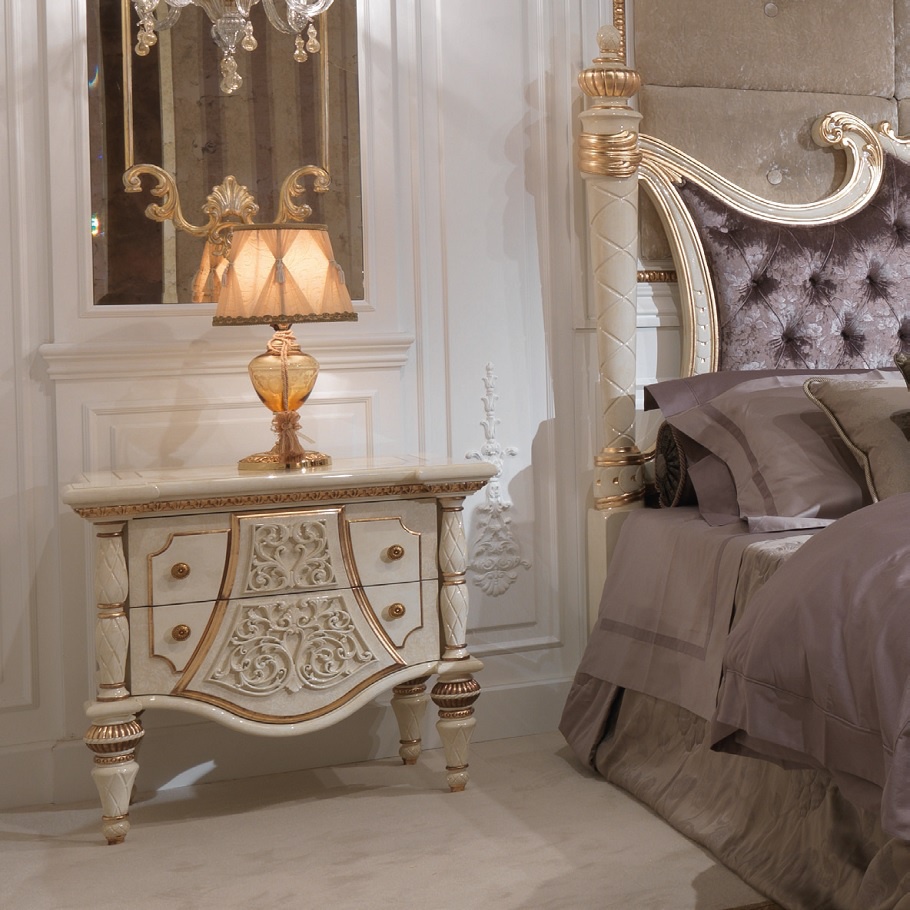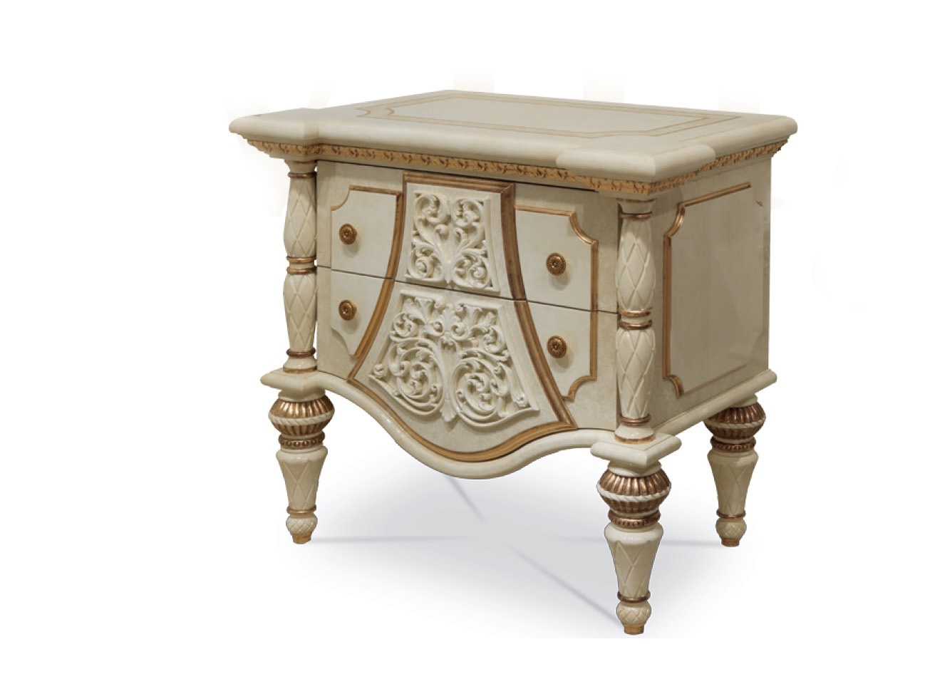 | Description: | The bedside table Bovary from the Italian manufacturer Turri. Frame, legs products made of wood. The surface is varnished in ivory. Decor serves exquisite fine hand carved with a coating of gold foil. |