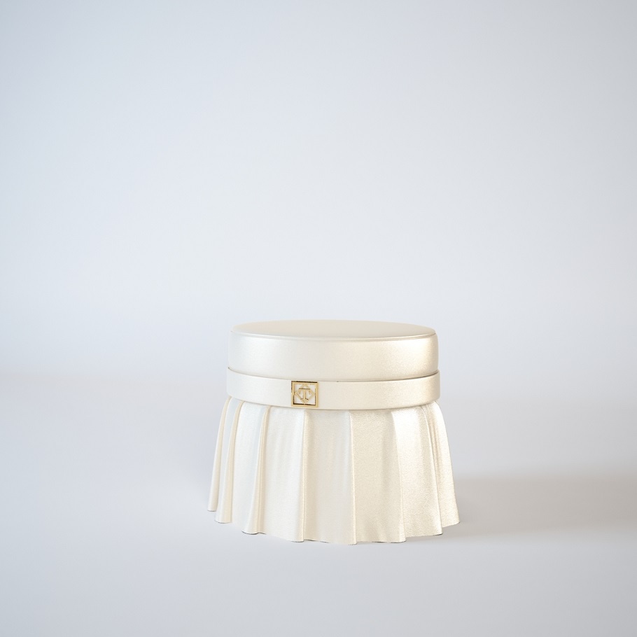 Poof Couture from Italian manufacturer Turri. Model round. The frame is made of wood. Upholstery textile manufacturer directory. Filler - polyurethane foam. The decor speaks drapery and gilded metal logo. Pouf in classic style, suitable for any room, due to the functionality.