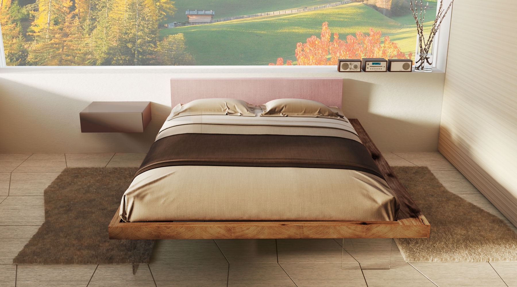 Double bed Frame from the Italian manufacturer Lago. The model is made with special and unusual design. The frame is made from wood on the basis basis of of tempered glass. Perfection glass is combined with the imperfection of the tree. Knows how to stir emotions and add warmth. Frame is a natural material for beds. The result is an innovative game of contrasts for the bedroom.