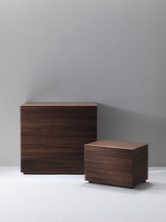 The Riga chest of drawers from Italian manufacturer Porado. A chest of drawers from solid Canaletta walnut finish "nature" or in lacquer. "Corrugated" fa?ade with horizontal slats creates unusual decorative effect. Author designer Tarcisio Colzani (Tarcisio Colzani) developed a model in 2008. Originally presented two versions with two or four drawers. In 2009, the factory has released another version of the model greater height.