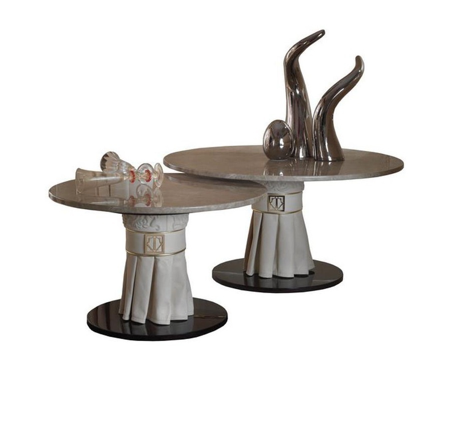 Pridivannogo table round Couture collection from Italian manufacturer Turri. The manufacturer offers a choice of 2 options, the difference in size. Frame, bearing, the base is made from wood. The surface finish of polyester. Colors: white, pearl, brown, gold. Elegant floral ornament and textile drapery on a large stem act as decor. The product is fixed on the base. Table is made in a modern version of art Nouveau style, suitable for refined living.