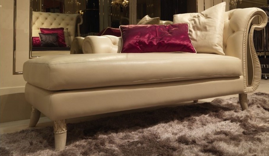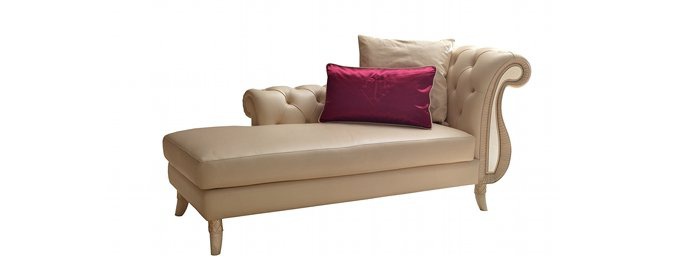 Couture couch from the Italian manufacturer Turri. The manufacturer offers 2 options, with the right and left armrests to choose from. The frame is made of wood. Upholstery - leather. Filler - polyurethane foam. Colors: pearl, Golden. Golden metal insert in the front of the armrest and diamond-shaped buttons with stitch-Capito serve as decor. Classical music in modern performance product gives it relevance for a long time.