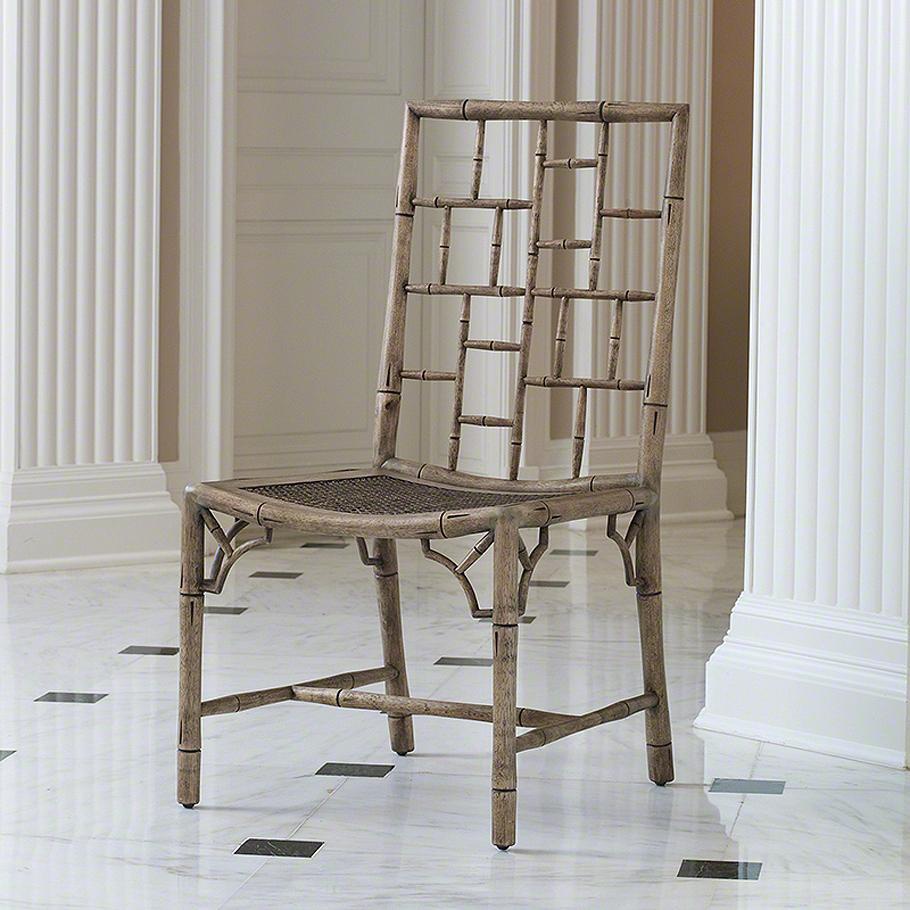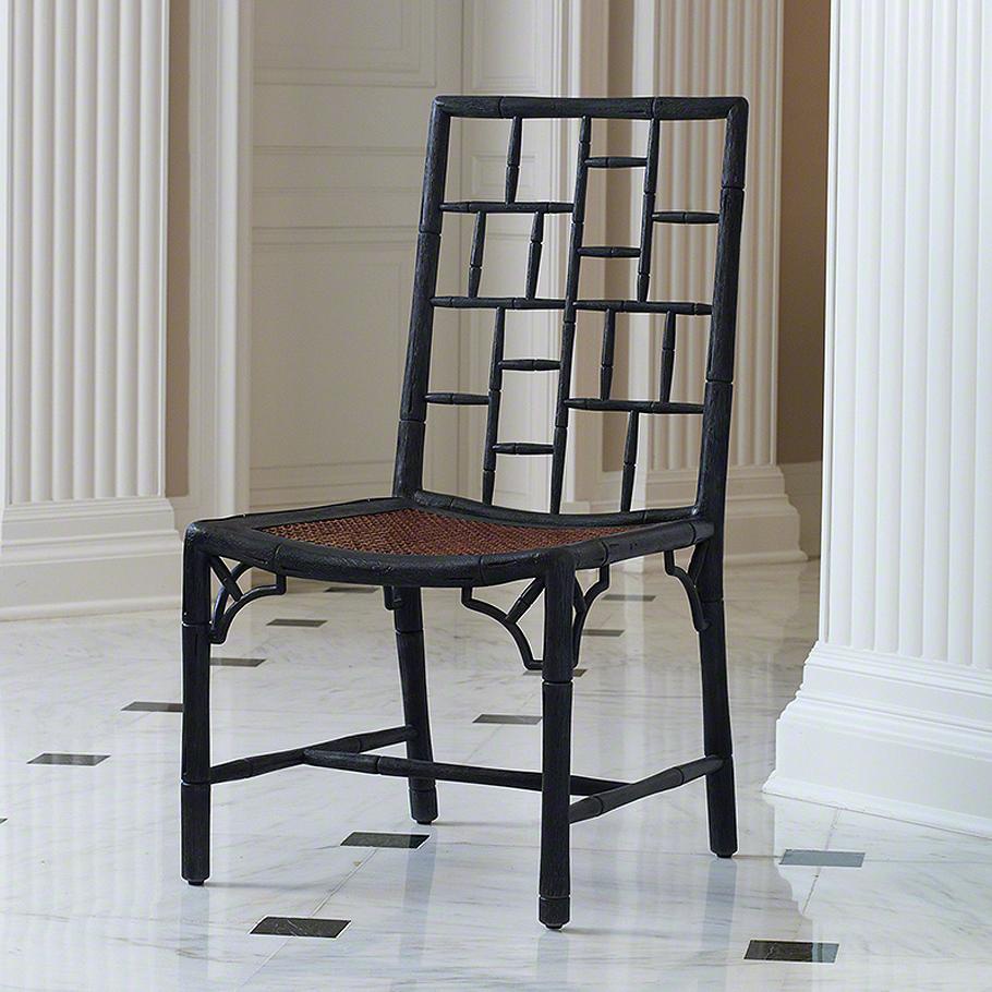 Chair Cathay from an American manufacturer Global Views. The chair is made in the Chinese style, popular in Europe from the mid-eighteenth century. Popularity of this style is first of all obliged to the famous English furniture master Thomas Chippendale, which is still sometimes called "Chinese Chippendale". Chair, made of wood, no doubt inspired by bamboo - an easy, transparent, woven seat, backrest resembles the character. The tree is processed in the sandblasting technique. The stool is available in three colors: black, white and sand color. Global Views when creating their collections of furniture and accessories uses both the experience of older European couture houses such as Chanel, Balenciaga and Hermes and fresh ideas of modern designers. Colorful, multi-layered collection are a refreshing blend of Antiques and the sense of modernity.