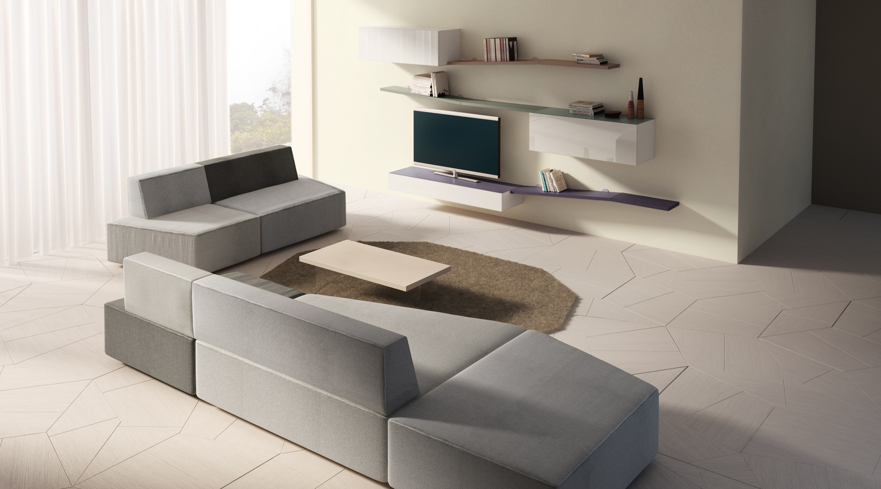 Slide the modular sofa from Italian manufacturer Lago. Upholstery - textiles. Filler - polyurethane foam of different density. System of rectangular and trapezoidal sections offer broad compositional freedom. The model conducts a revolution in spatial, aesthetic and ergonomic. Colors range from the manufacturer.