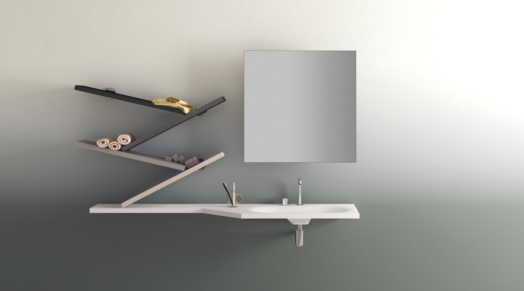 DiagoLinea shelf from Italian manufacturer Lago. Made of wood with a varnished surface. Offering countless design options focused on storage. Support each other in unexpected inclinations that seem that defied the forces of gravity. This effect can be enhanced through the use of invisible bookends. The revolution in storage, which is expressed in the extreme flexibility and freedom on the wall.