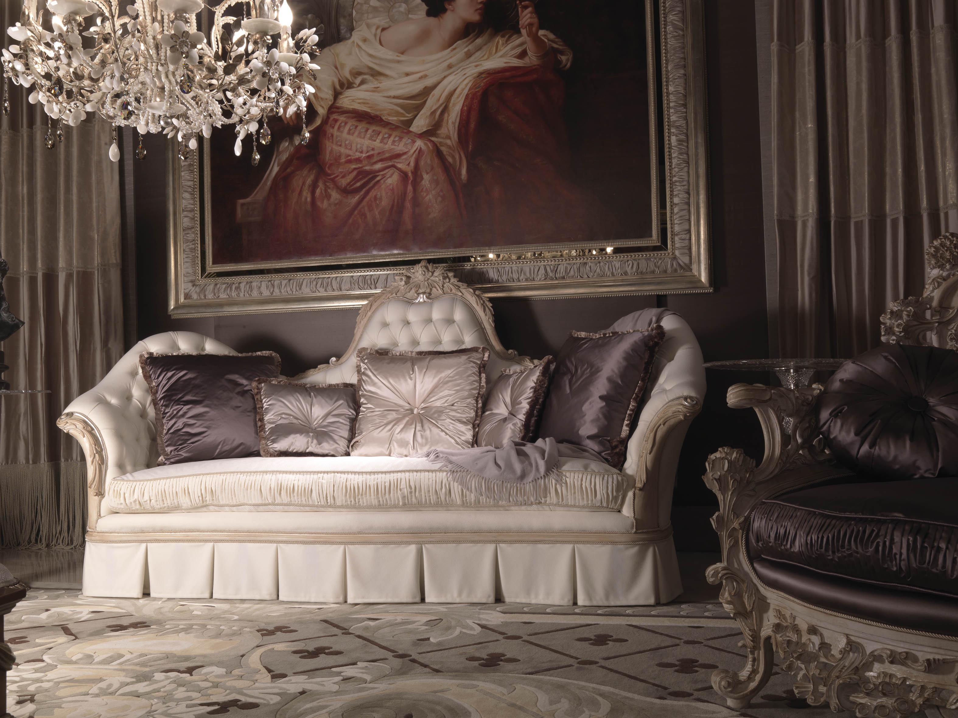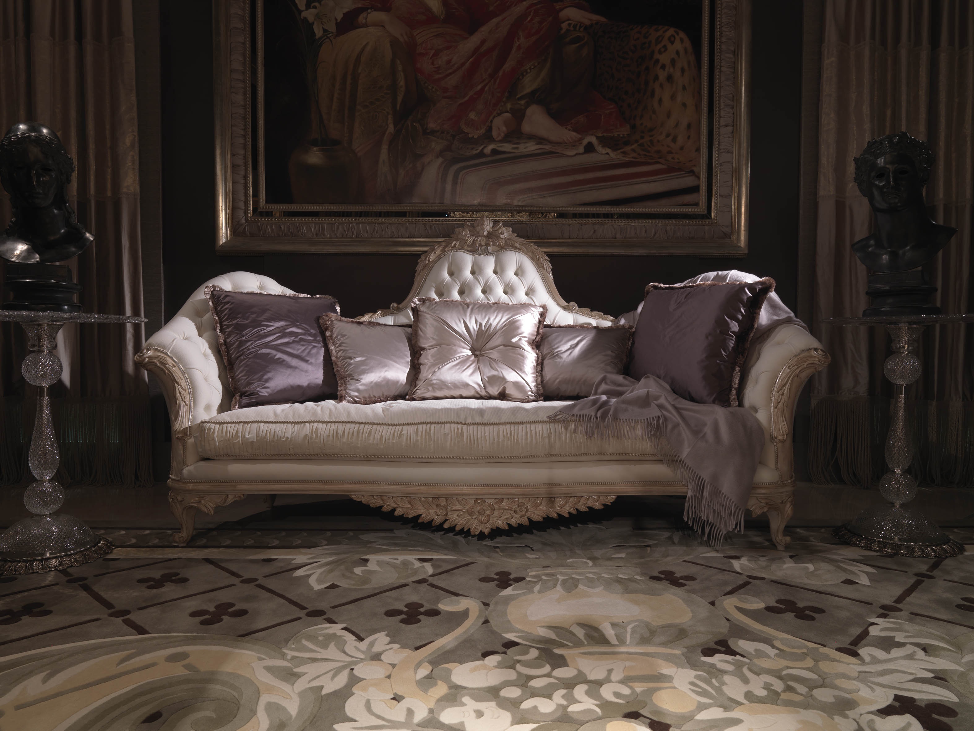 Sofa from Italian manufacturer Jumbo Collection. The model is made in classic style. Frame made of solid wood. As upholstery satin. Decor handmade, quilted upholstery. The sofa has a high back and soft armrests.