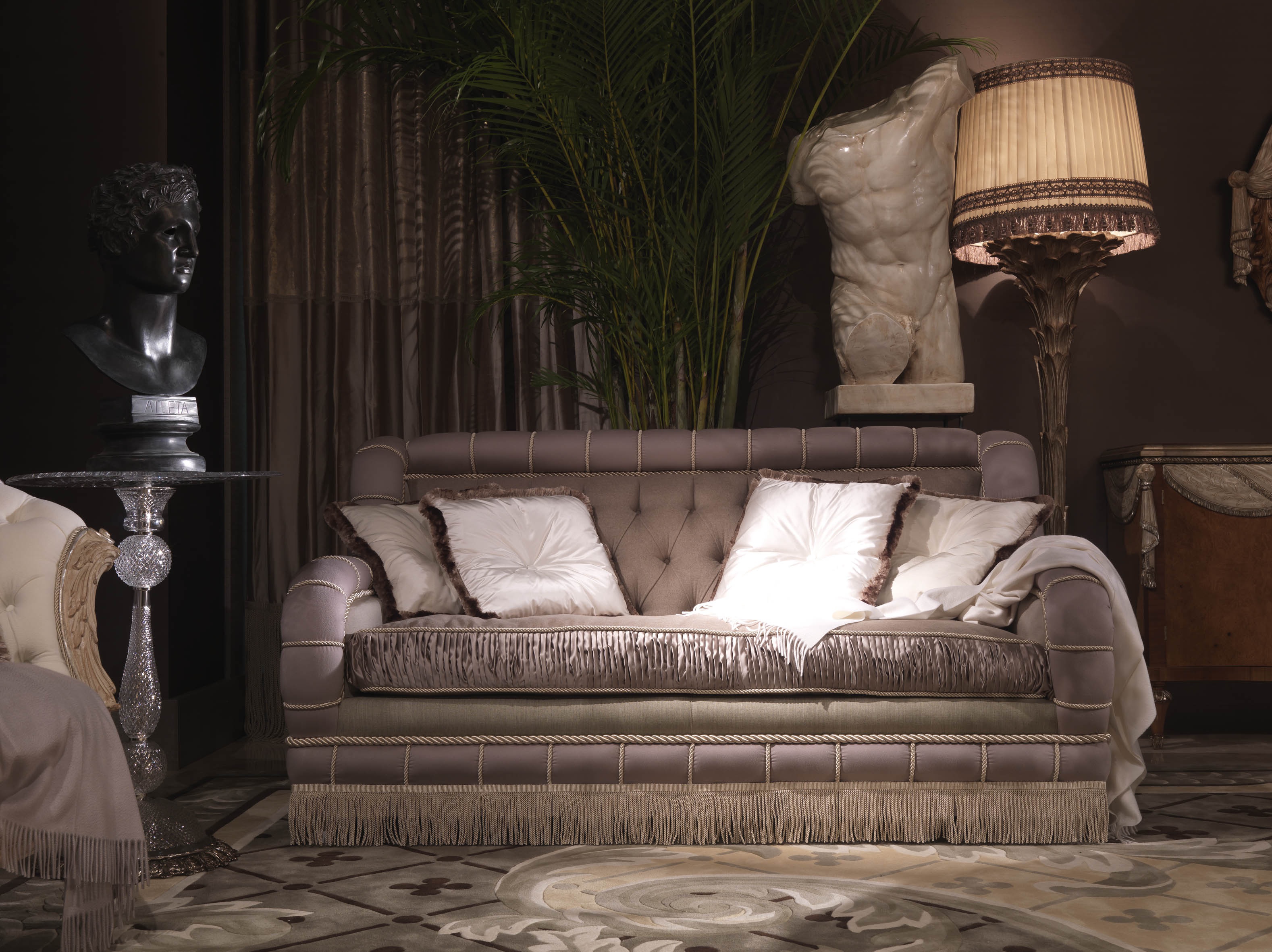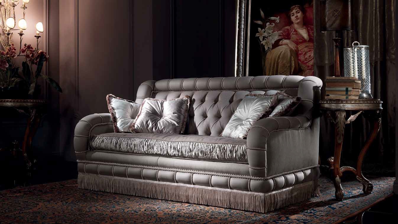 Sofa from Italian manufacturer Jumbo Collection. The model is made in classic style. Frame made of solid wood. For upholstery, use velvet and satin. The decor is a - stitch Capito.