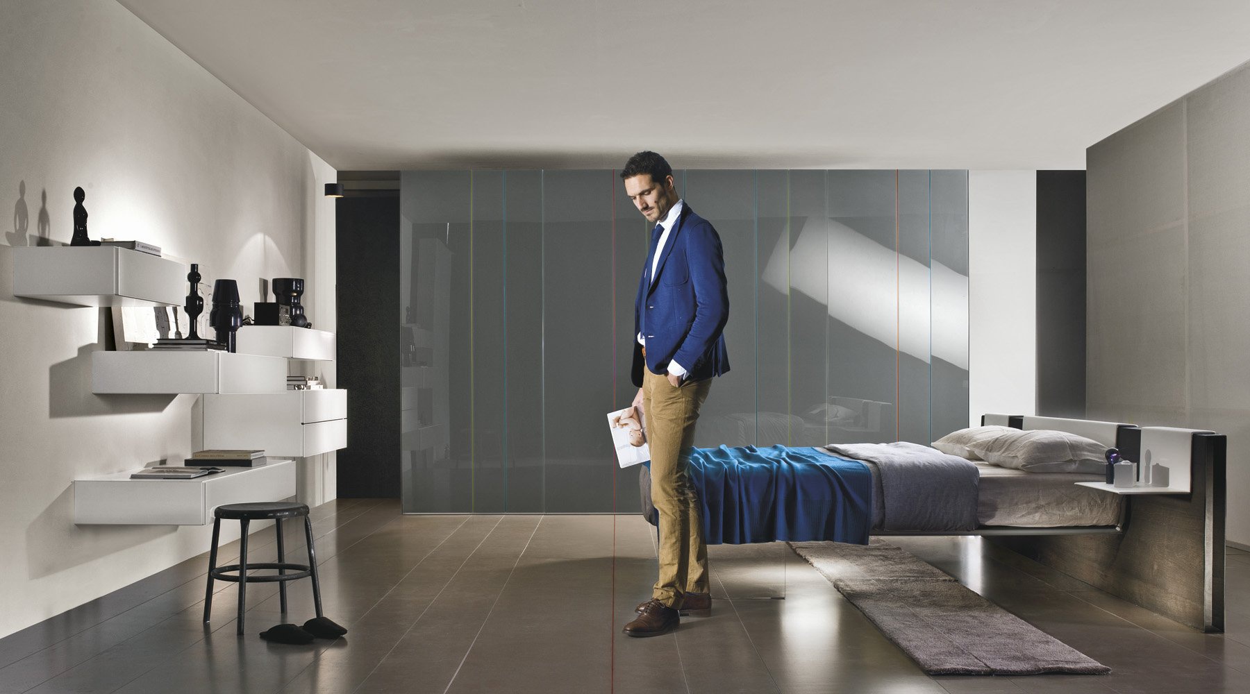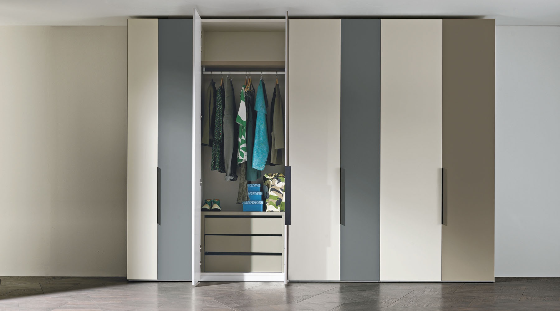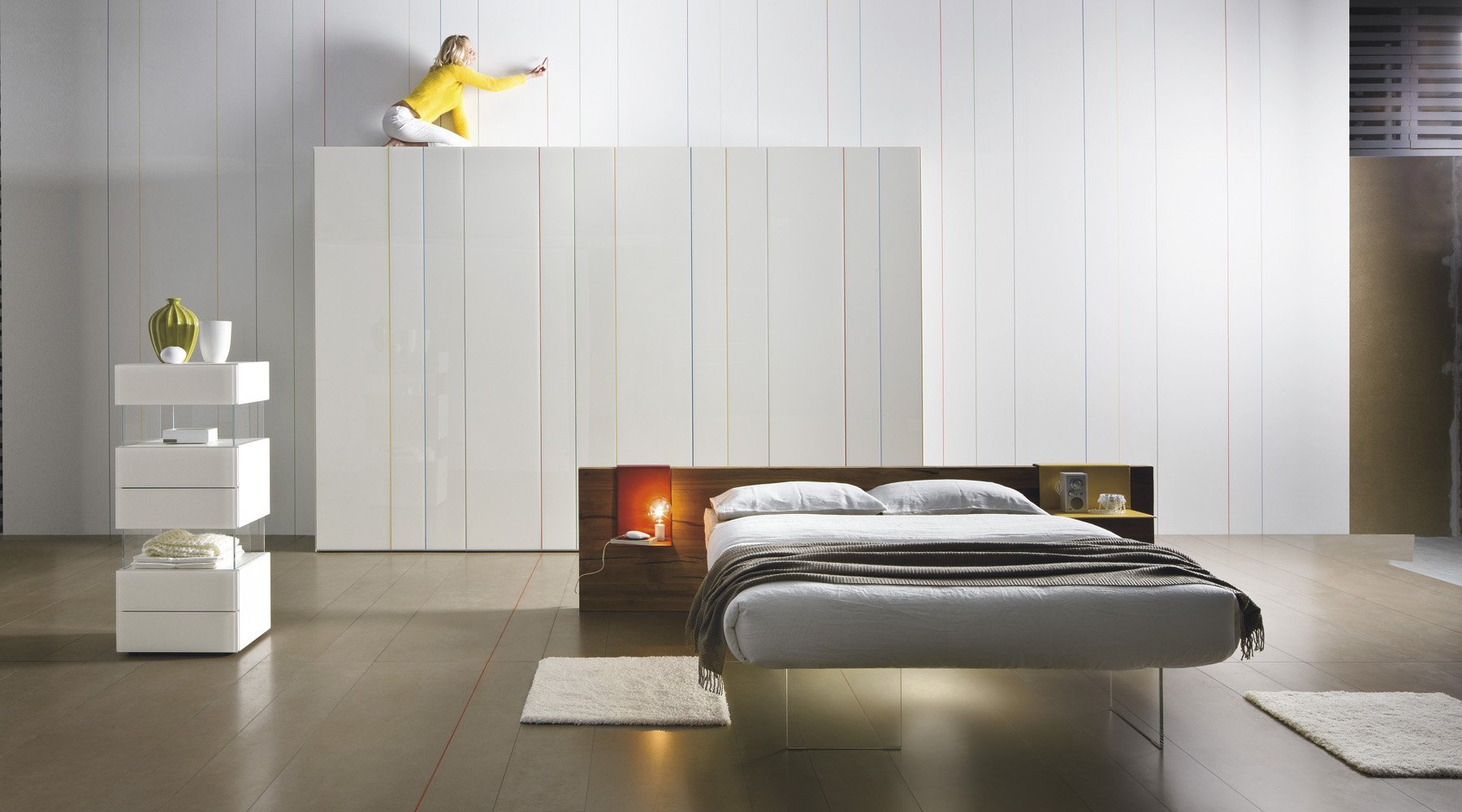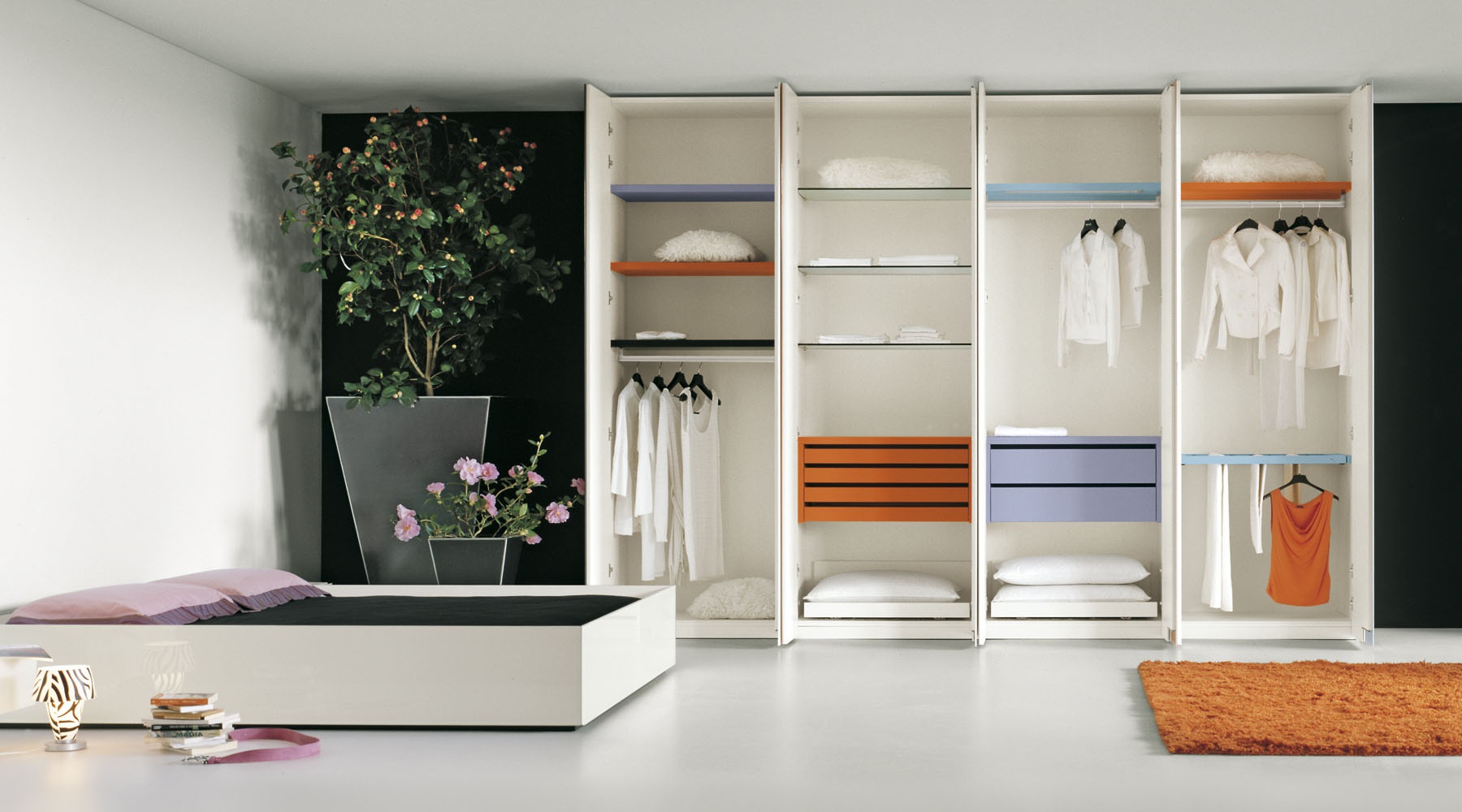 The N. O. W. wardrobe from Italian manufacturer Lago. Made of wood, glass, and metal. Various kinds of surface and material for production, with colored stripes, which allow the imagination to evoke emotions. It's colorful wardrobe, where traditional doors can be customized to size and color. Due to the absence of handles and custom parties to fit perfectly into the interior of the house. Glass panels can be installed on the rear of the enclosure. Thus can be used as a dividing wall or be installed in the center of the room.