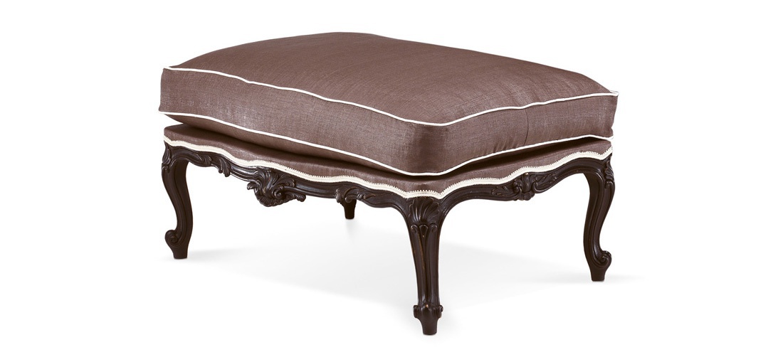 Bench from Italian producer Roberto Giovaninni. The model is made on a carved base from solid wood and finished in ebony and artificial aging. Decorative elements - hand-carved. The seat bench is made in the form of cushions filled with polyurethane foam, upholstery fabric offered. Colours in stock. The bench will adorn your interior living room or hall in the classical style.