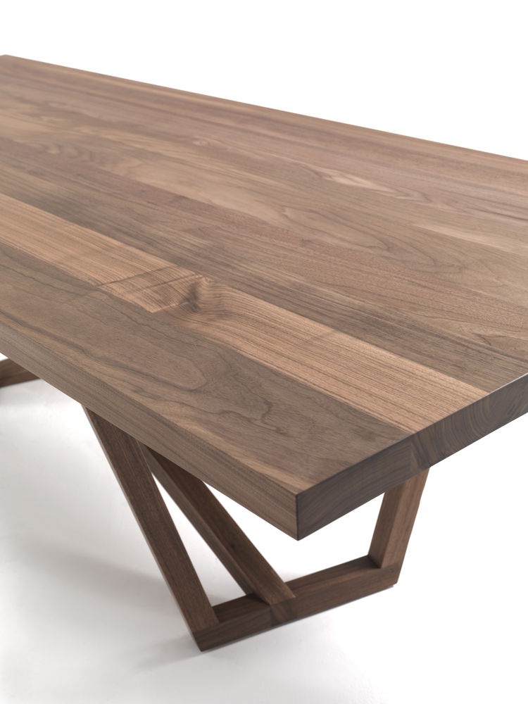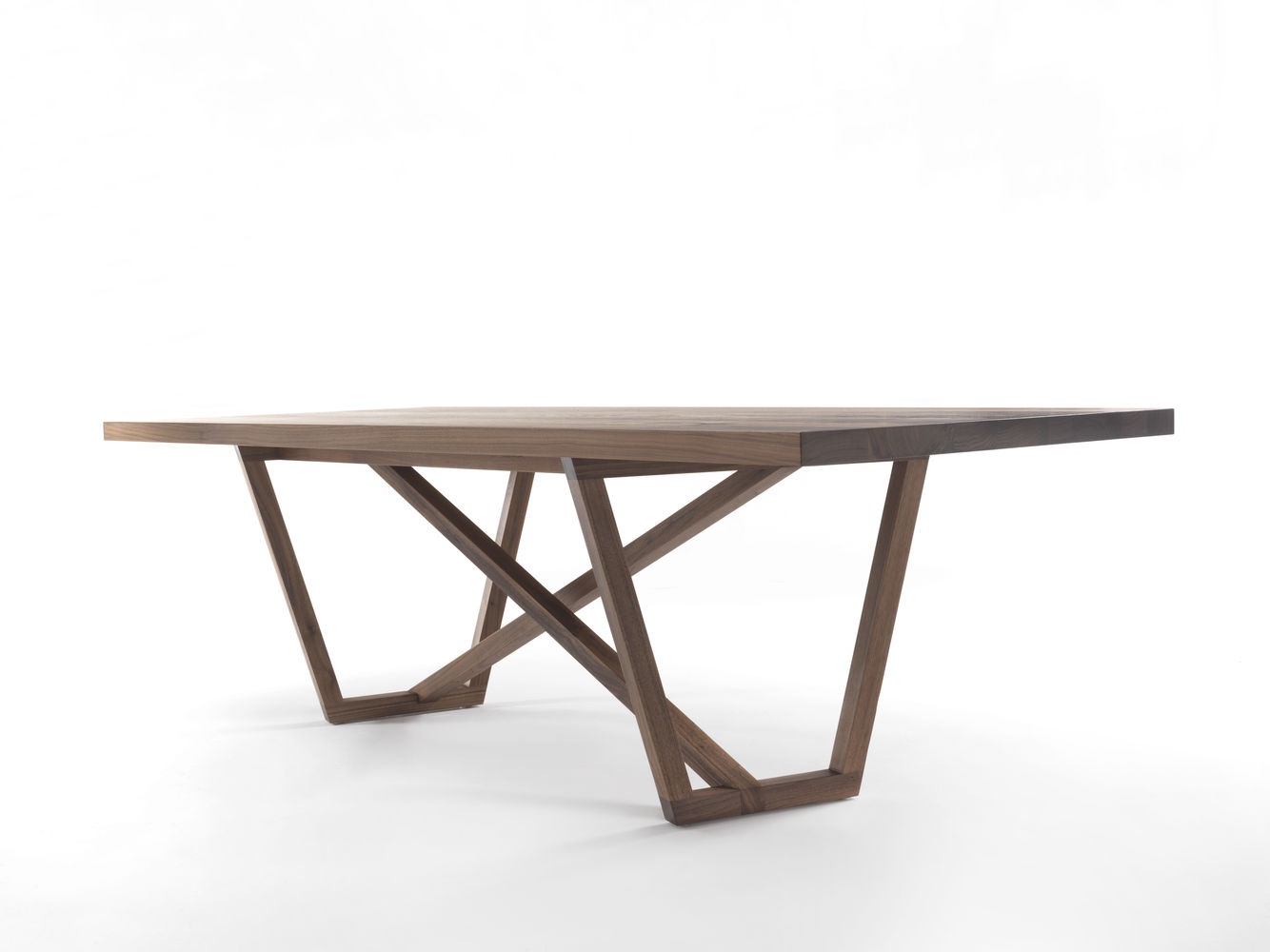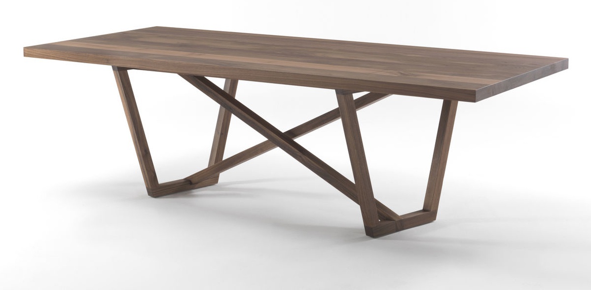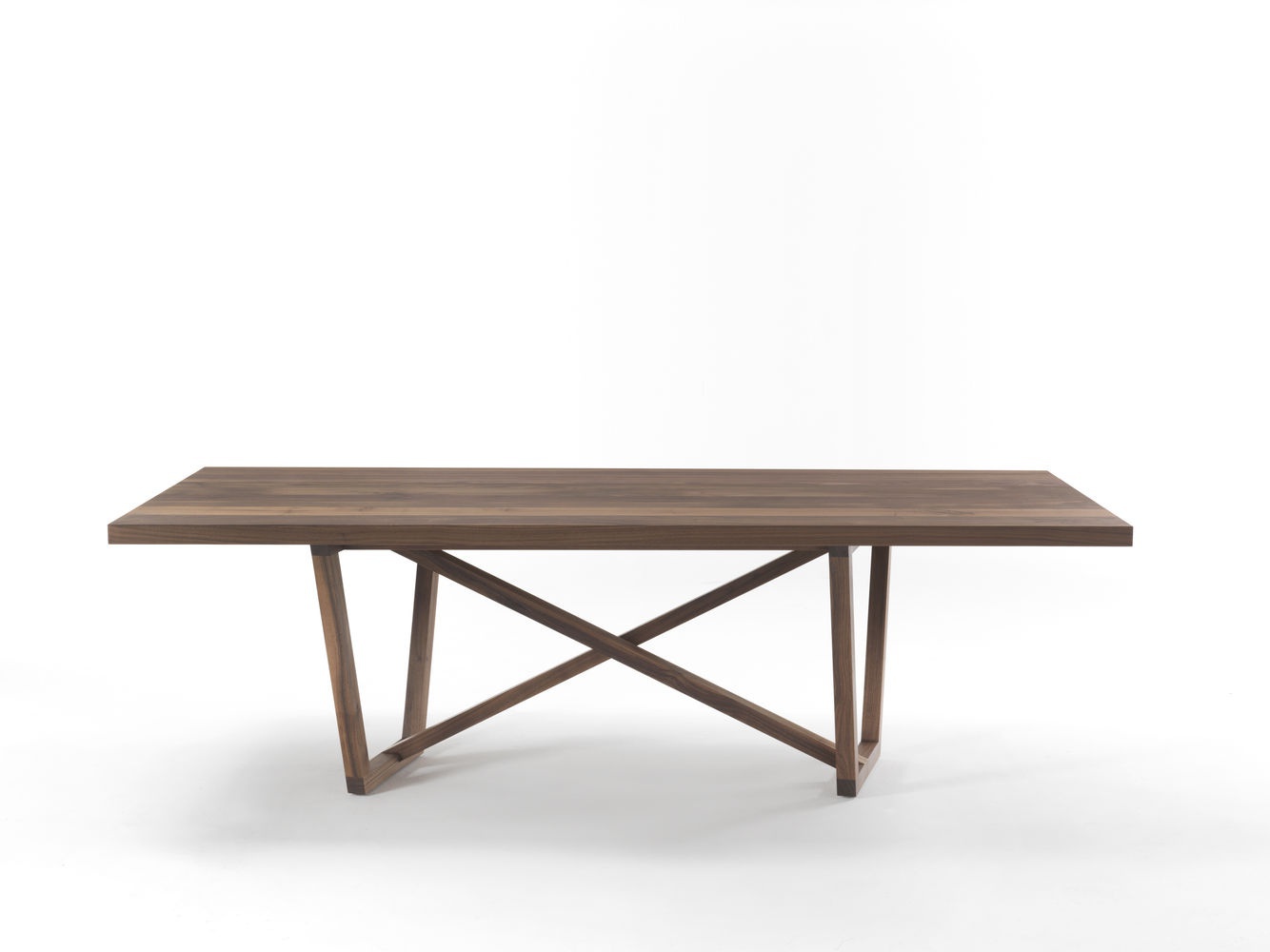 The Traverso table from the Italian manufacturer Riva 1920. Model made entirely of solid wood. The manufacturer offers a choice of different species of wood without knots: cherry, maple, oak and walnut. The table top has a thickness of 4 cm the Base has a special system of intersecting cross beams.