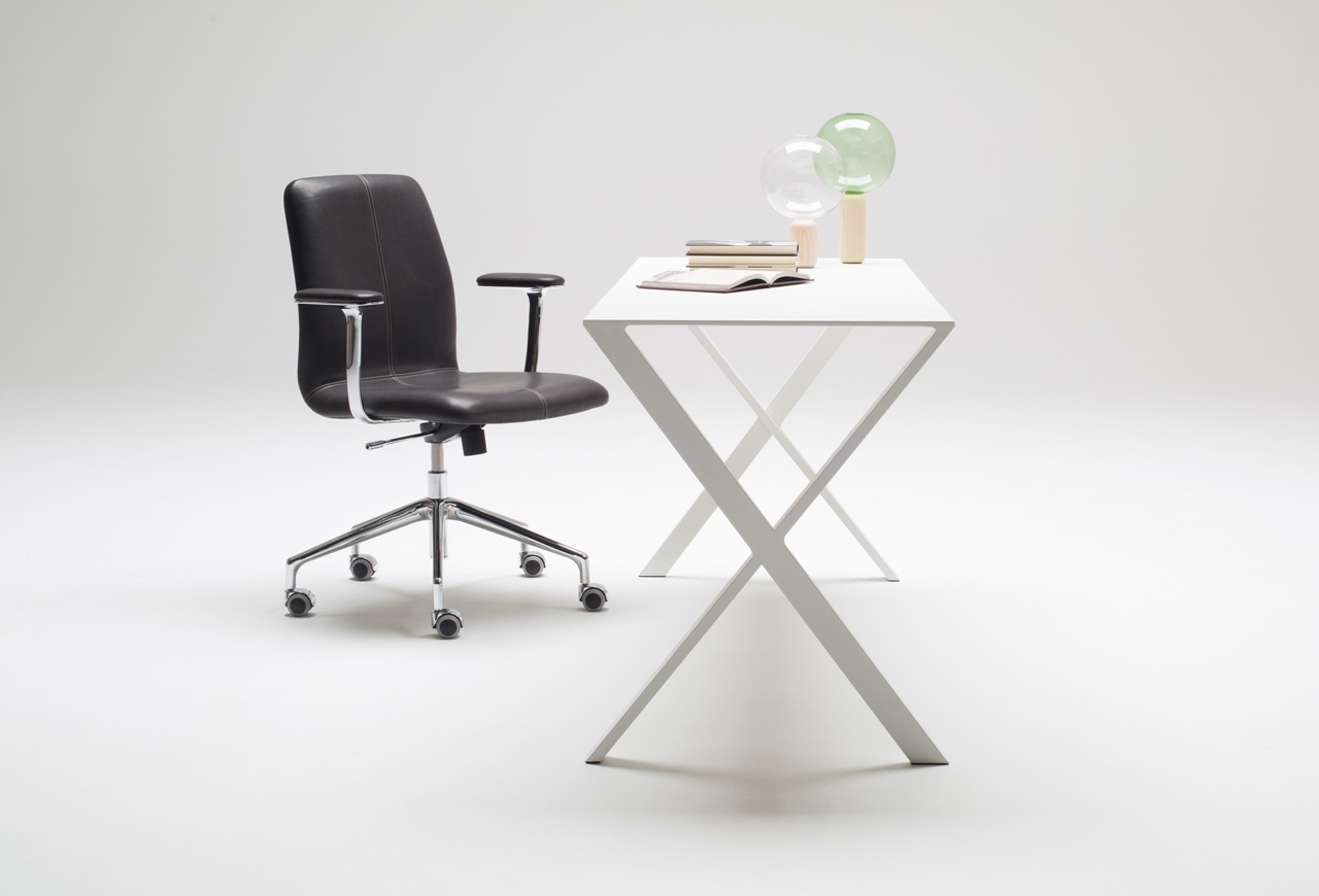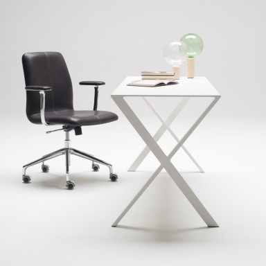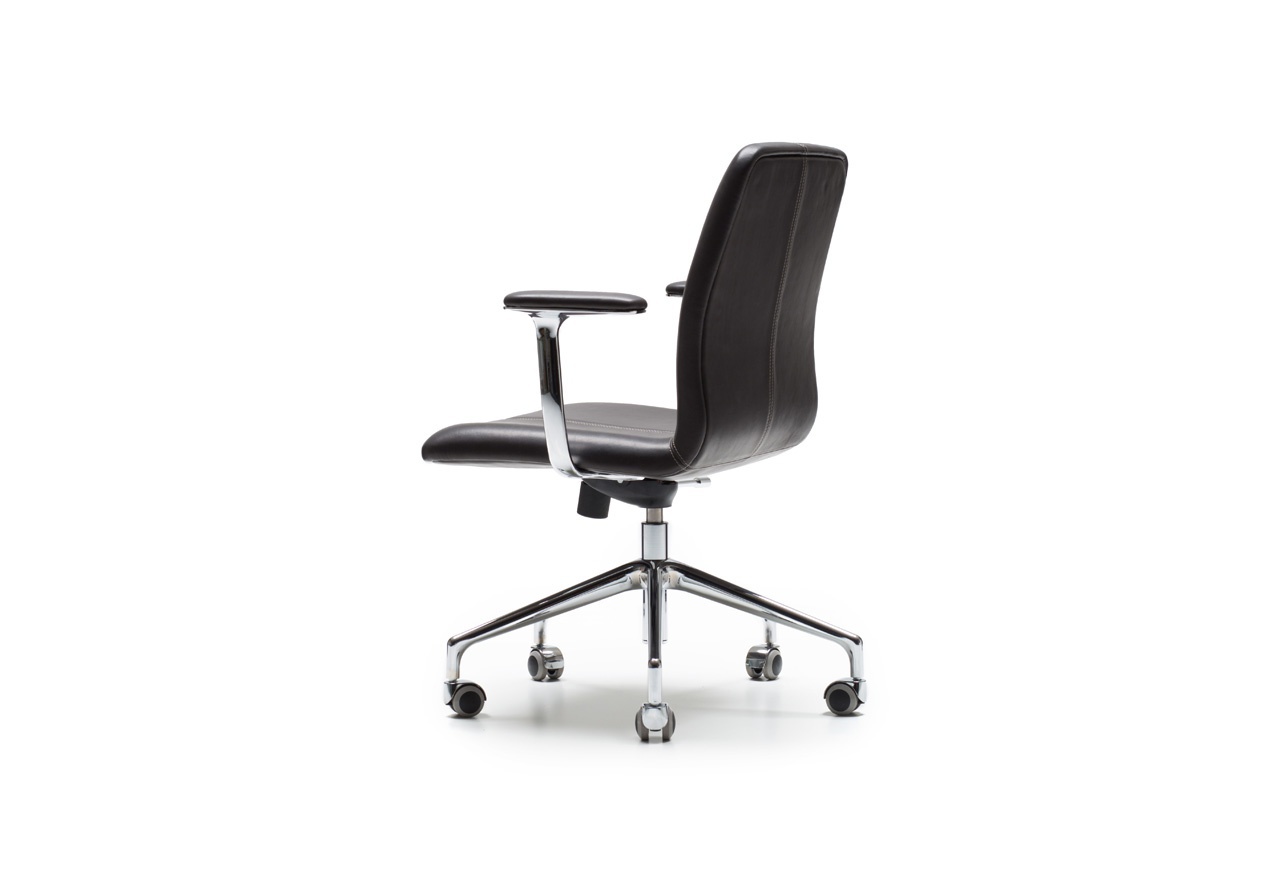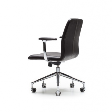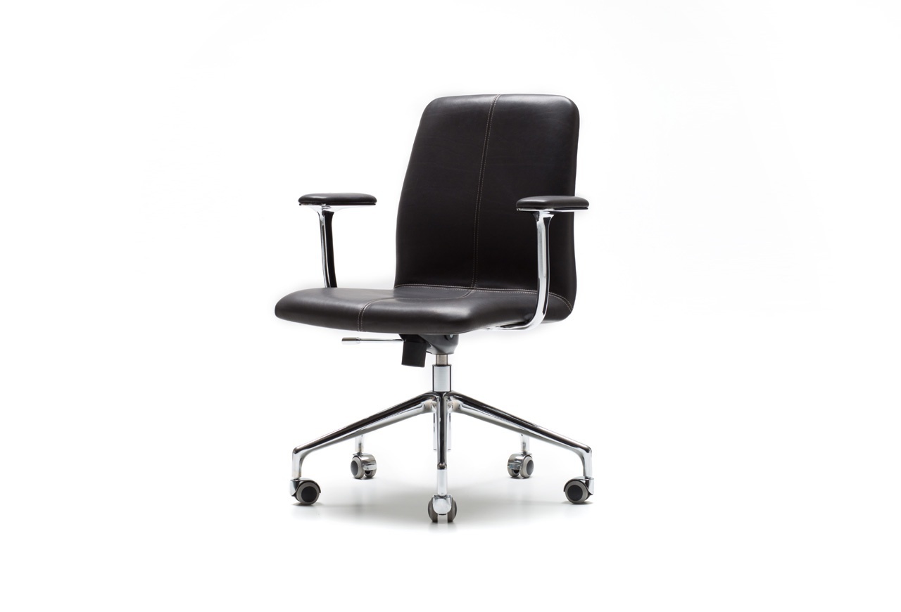 The rotating Lotus Comfort chair from the Italian manufacturer Cap Design S. p.A.. Base - legs are made of metal with chrome or painted surface. Upholstery -leather or textile. Filler-polyurethane foam. The model with armrests, with four or five rollers and rear double shell. The seat angle can be controlled rocking motion and height change. Suitable for both home use and in public places. Seeks to provide a more convenient seat.