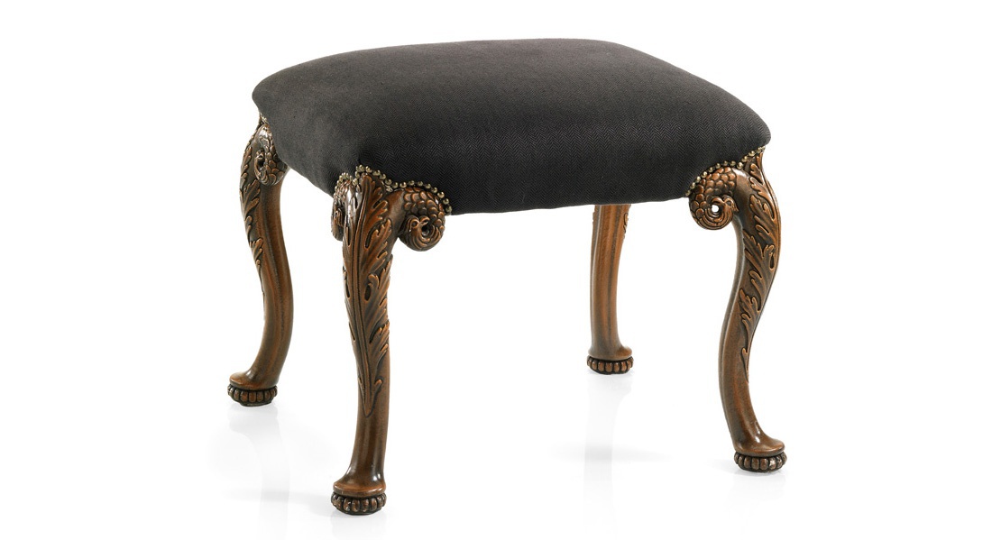 Bench from Italian producer Roberto Giovaninni. The model is made on the basis of solid walnut, finishing - artificial aging, the filler is polyurethane foam. Decorative elements - hand-carved. Colours in stock. For upholstery, use textile. The bench will adorn your interior living room or hall in the classical style.