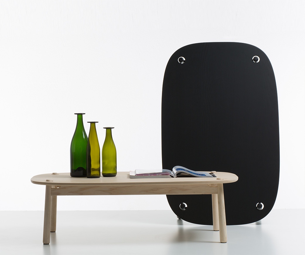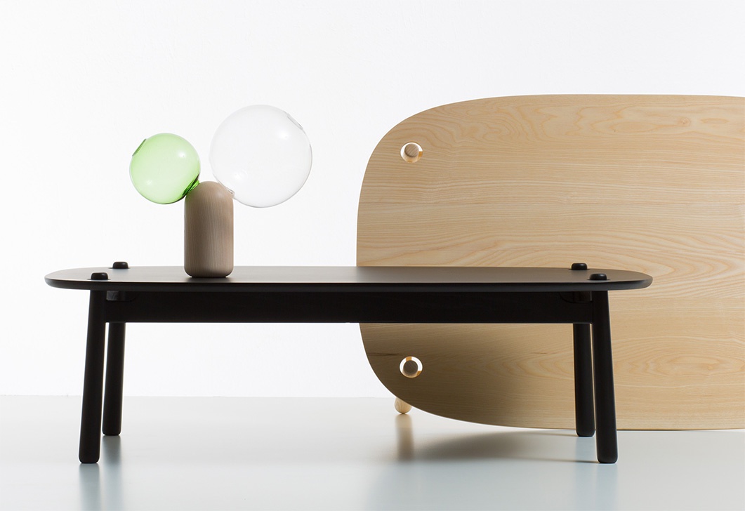 Peg coffee table from the Italian manufacturer Cap Design S. p.A.. a Frame of wood. Model with rounded edges and accentuated finish in hard wood (natural, ash,walnut, wenge or ebony) giving it a soft appearance. All details are rounded, from the tabletop to the legs. It is characterized by the intersection of structures to the tabletop which mimics other pieces from the same collection. Sensational objects with graphic simplicity, enriched with constructive details.