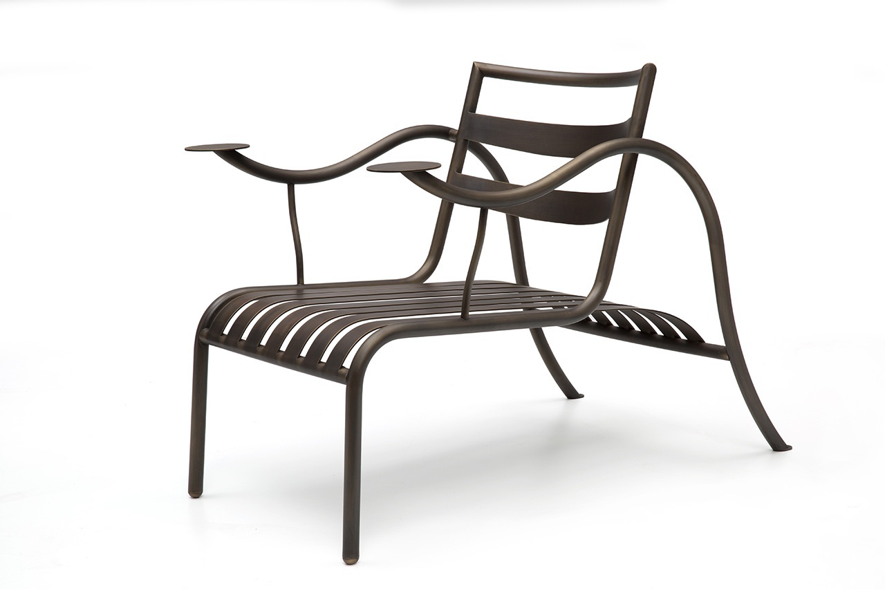 The Thinking Man's chair from the Italian manufacturer Cap Design S. p.A.. the Frame is made of wrought iron. Relaxing model is available in limited quantities. This industrial product is handmade, which makes each piece distinctive from others. A great example of how design reaches its maximum expression thanks to the skillful hands of masters. The armrests are equipped with glass trays.