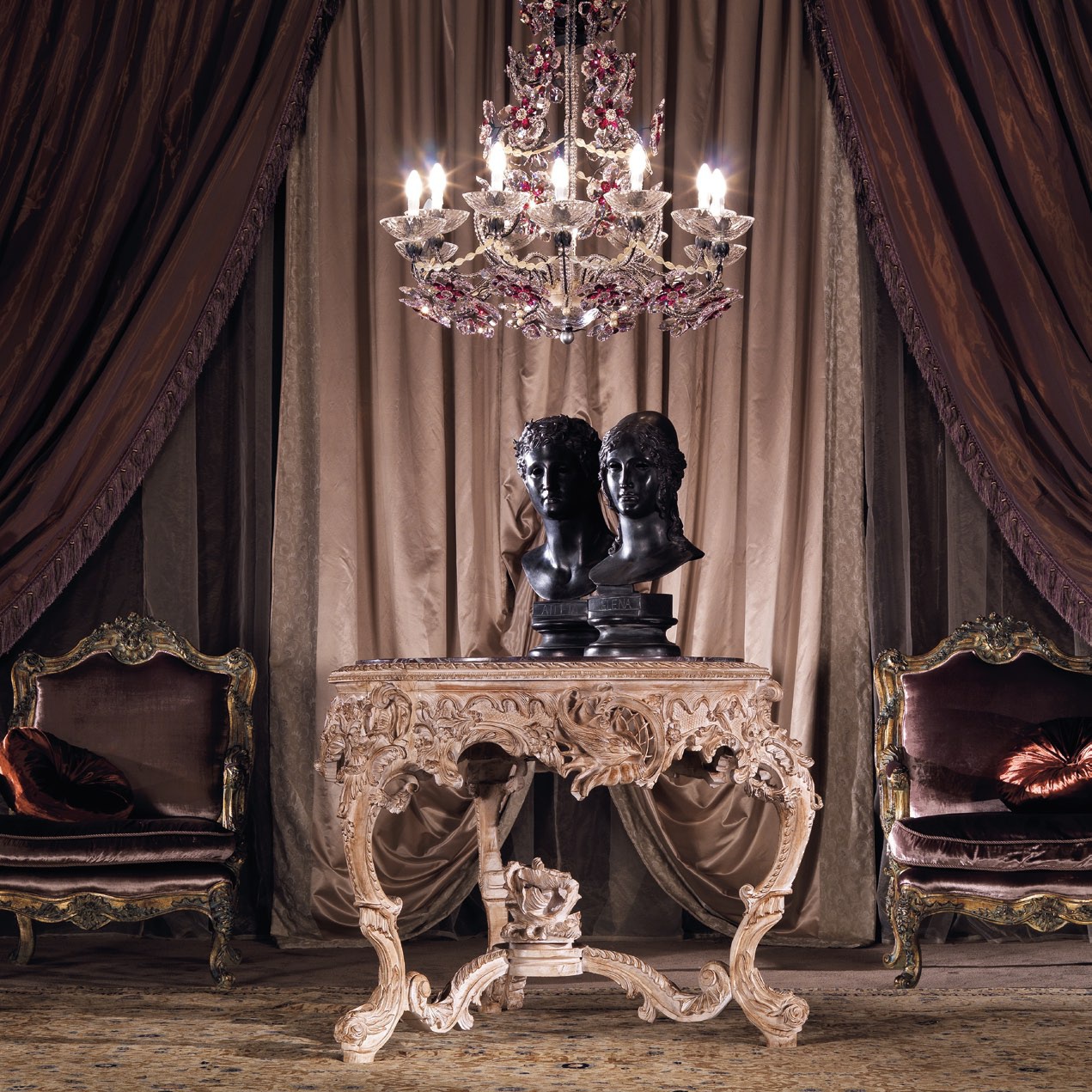 Coffee table from the collection of Manet from the Italian manufacturer Jumbo Collection. The original model in the Baroque style, natural wood durum and marble. Decorative elements are carved, handmade. Varnishing is made with antique wax. Colours in stock.