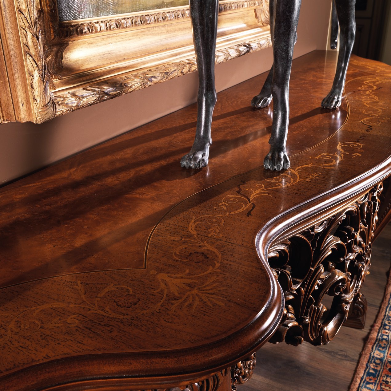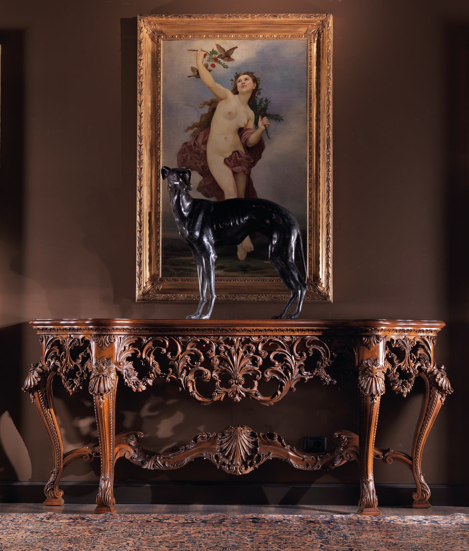 Console Manet from the collection from the Italian manufacturer Jumbo Collection. The original model in the Baroque style, from Linden wood. Decorative elements are carved, handmade. Varnishing is made with antique wax. Colours in stock.