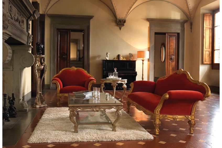 Coffee table from Italian producer Roberto Giovaninni. The table top is rectangular in shape, made of tempered glass. Base on curved carved legs made from solid wood, the finish is silver and patina. Decorative elements - hand-carved. Bottom glass shelf is provided in the frame of the array. Colors to be selected from the range of the factory. Table surely will beautify your living room interior in classic style.
