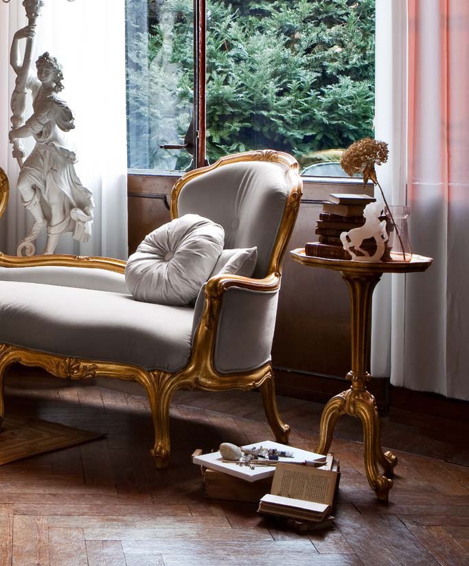 legs, worktop: natural wood finish: gilding finish: antique thread: handmade |