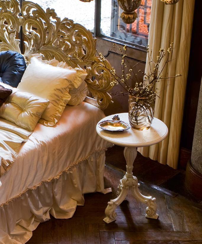 Bedside table from Italian producer Roberto Giovaninni. Presents a model of a round table made of solid wood. The top is decorated by an engraving. Trim - artificial aging and gilding. Decorative elements - hand-carved. The surface is covered with varnish. Color set from the range of the manufacturer. The model is made in classic style, combines tradition and design in the mid seventeenth century, Louis XIV. Great addition for your bedroom or living room.