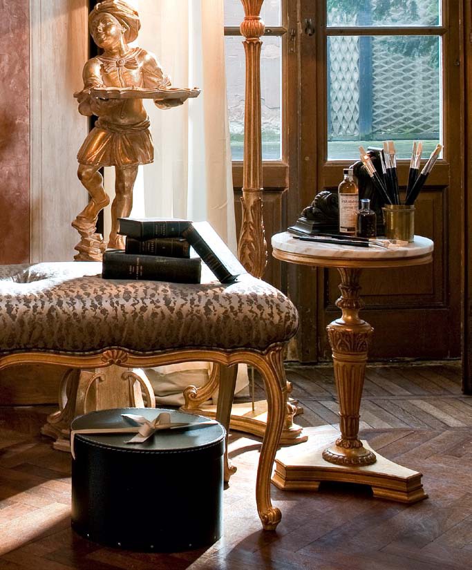legs: natural wood countertop: marble finish: gilding |
