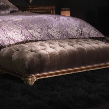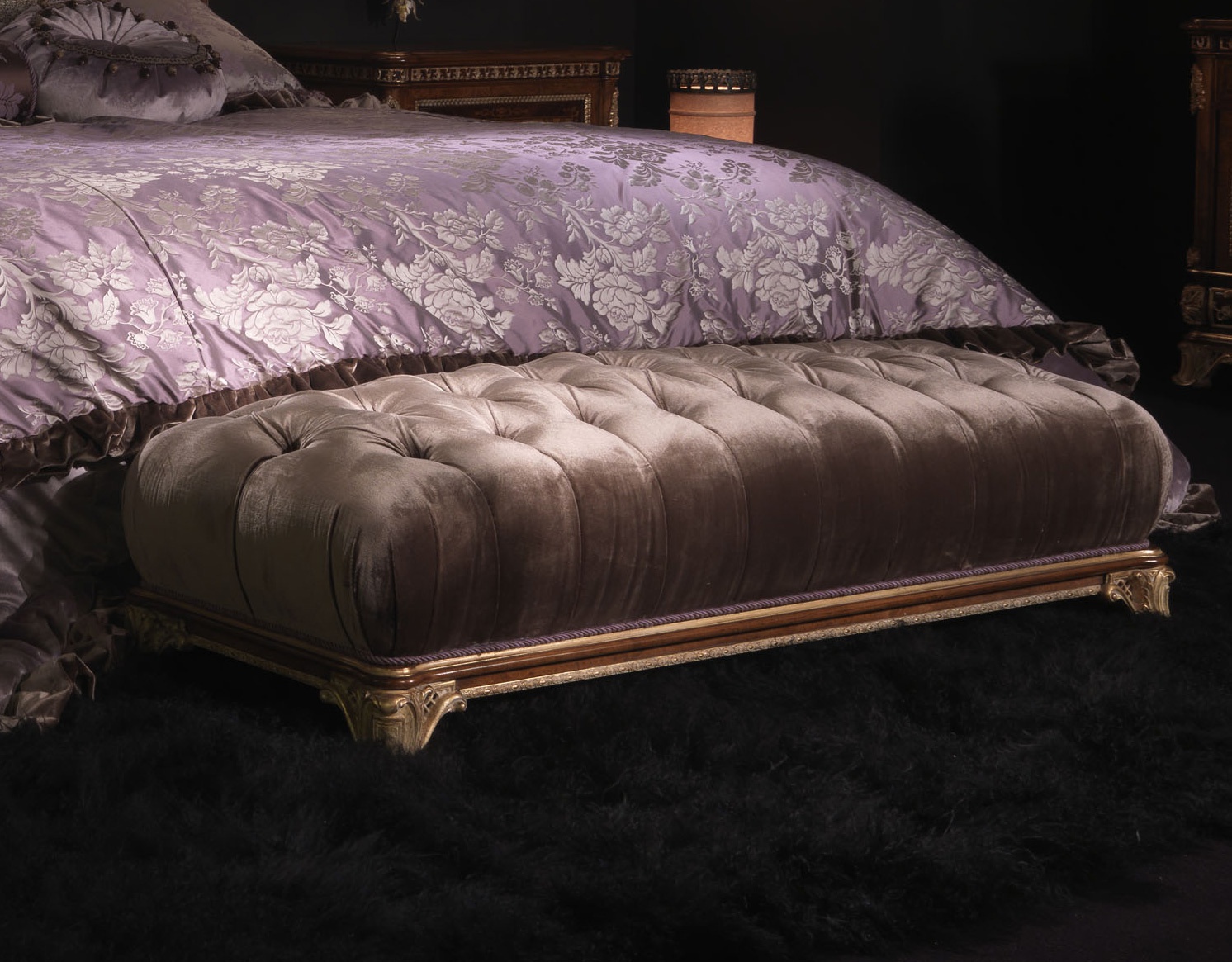 Bench bedside Opera from the Italian manufacturer Jumbo Collection. The design is executed in classical style. The solid wood. Upholstery satin or velvet, padding of multi-functional polyurethane. The details of the bench with elements of thread, finish under the gold. Bench soft is suitable for furnishing bedrooms.