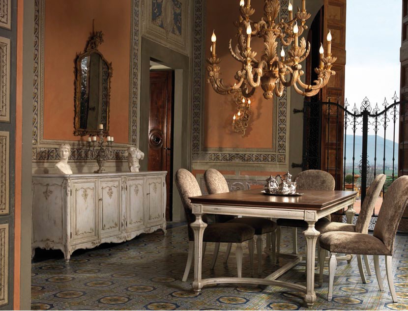 Dining table from Italian producer Roberto Giovaninni. Presents a model of a rectangular table, made of solid wood. Finish - patina or artificial aging. The bases of legs are connected together by arcs and Central beam. Colors to choose from the range of the manufacturer. The table will decorate your interior in Provence style.