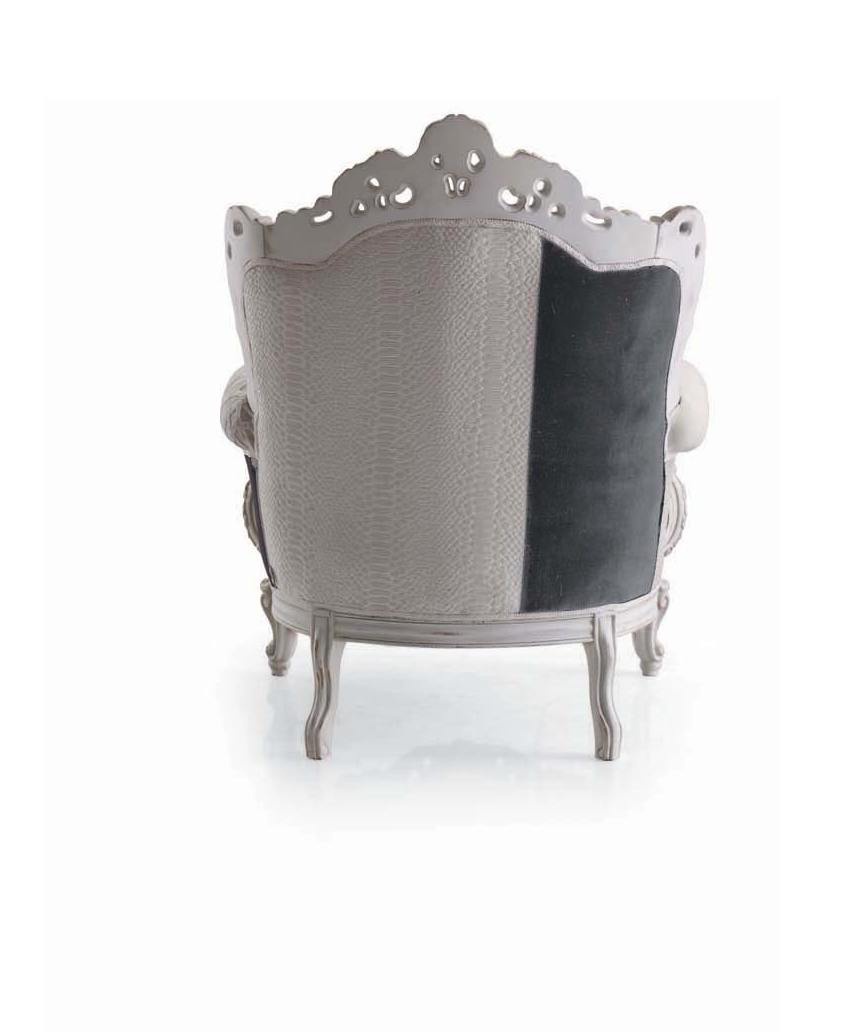 The Prince Patchwork chair from the Italian manufacturer Moda. The lacquered frame is made of wood, decorated with handmade carving. Colors in the catalog of the manufacturer, the model presented in white, beige, green. Model design, patchwork decor textiles, pattern and structure of the materials used. Style - glamorous, but the chair will fit perfectly into any modern interior.