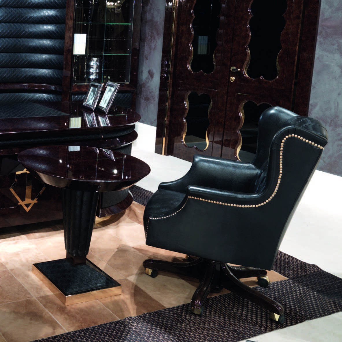 Headsets for office Orion from the Italian manufacturer Turri. This set includes: window, Desk, chair, wardrobe, table. Frame products - from wood. Surface finish - glossy lacquer from a range of companies. It is decorated with leather, metal. Colors - in stock. Set design with classic lines. A good choice for a solid Cabinet.