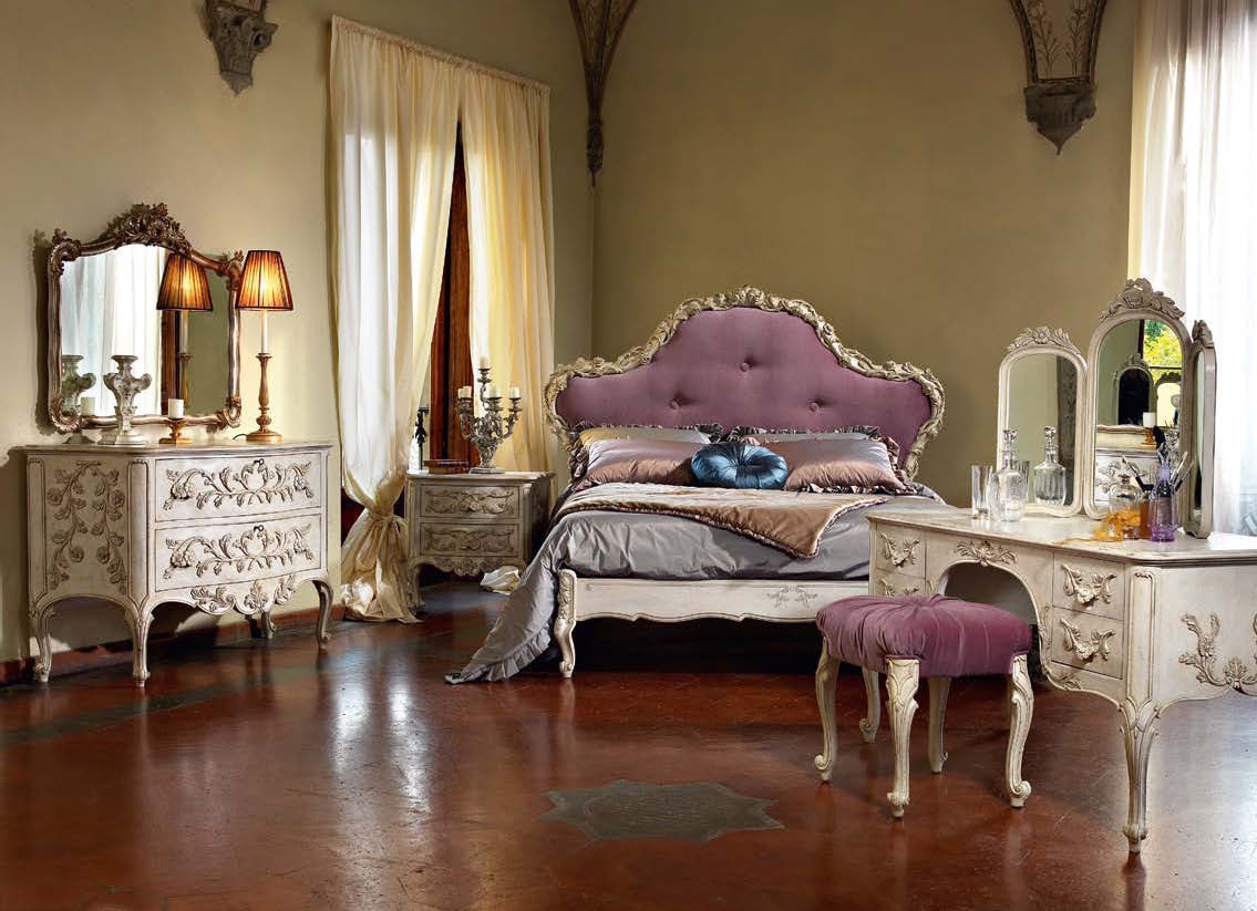Double bed from Italian producer Roberto Giovaninni. Upholstered headboard is covered in textiles with decorative stitching-Capito, decorated with hand-carved in the shape of flowers, finished with patina. Colors to choose from the range of the manufacturer. The frame is made from solid wood. Base on curved legs made of wood. A perfect model for bedroom in classical style.