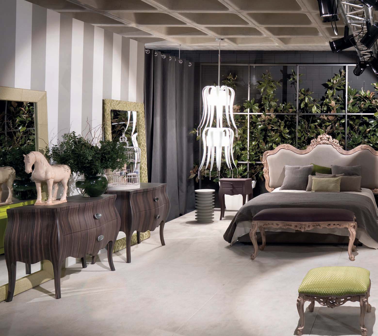 Bed with high headboard on wooden frame Stroke Di Fulmine, Moda