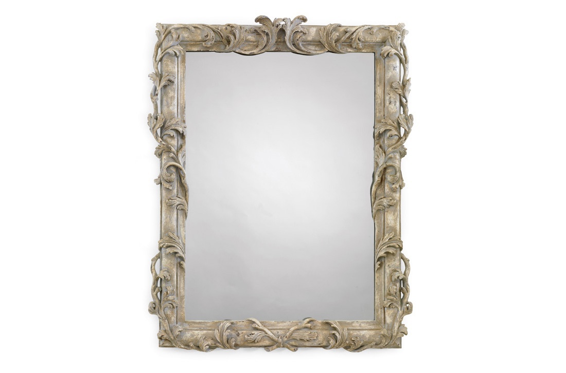 The mirror is from Italian producer Roberto Giovaninni. The frame is made of wood. Finish - patina or artificial aging. Decorative elements of spiral leaf is made manually. The model is made in classic style. Colours in stock. Mirror with carved decoration surely will beautify your interior design living room, takes in the early eighteenth century.