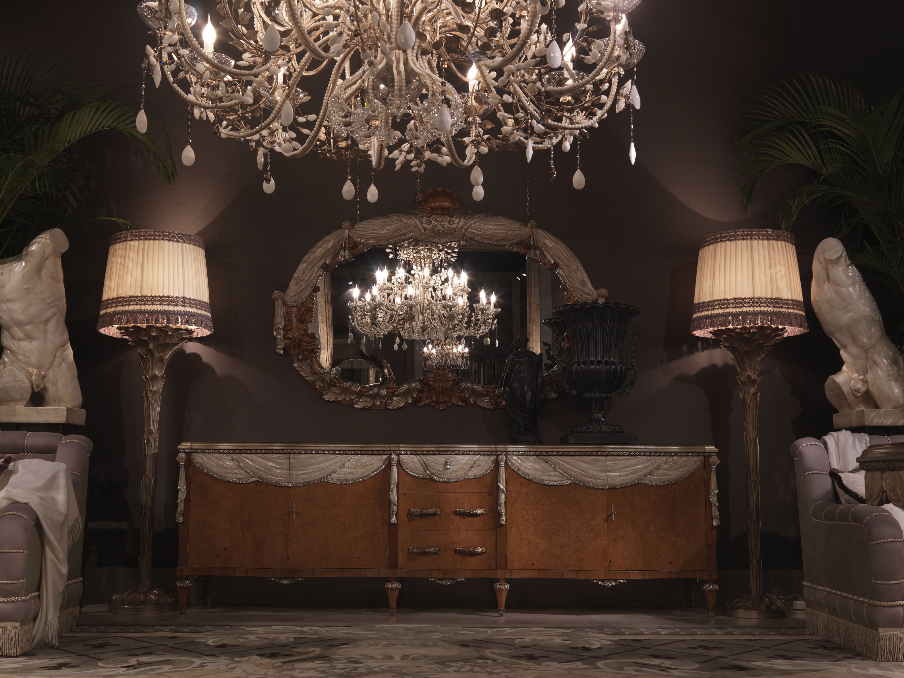 LAC a chest of drawers from Italian manufacturer Jumbo Collection. The model is made in classic style. Frame made of solid wood. The hardware elements with elements of thread, surface finish under the silver. Solid, roomy model.