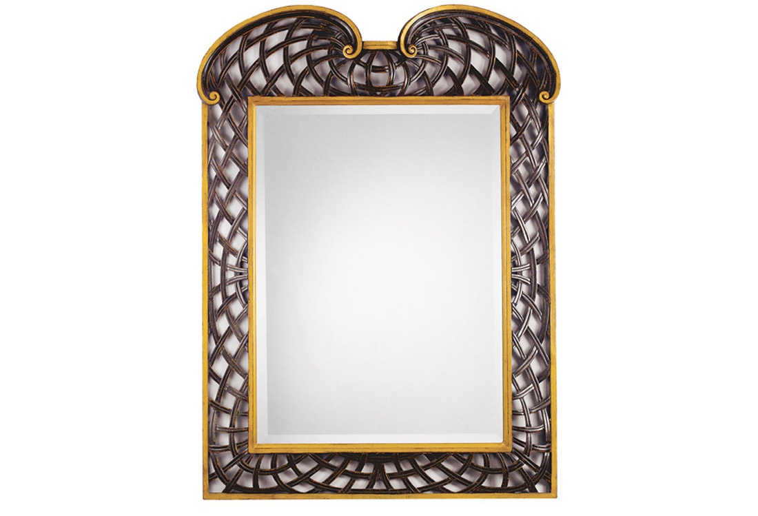 The mirror is from Italian producer Roberto Giovannini. Presents a model of a mirror rectangular in shape. The frame is made of wood. Finish - black lacquer, gilding and artificial aging. Decorative elements made by hand. The model is made in the art Deco style of 30-ies. Colors to choose in stock. The c mirror with decoration in the form of weaving will certainly decorate your interior living room or dining room.