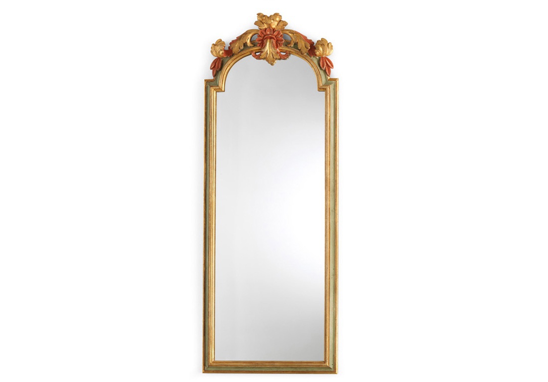 The mirror is from Italian producer Roberto Giovannini. The frame is made of wood. Finishing - gilding, patination and artificial aging. Colours in stock. Decorative elements in the form of leaf and flower is hand carved. The model is made in classic style, combines tradition and design of the thirteenth century, of Louis XVI.