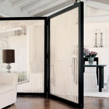 Screen Adone from the Italian manufacturer Porado. Screen room divider by designer O. moon. The ivory cloth covered wooden frame. The ash wenge finish and shiny varnish.
