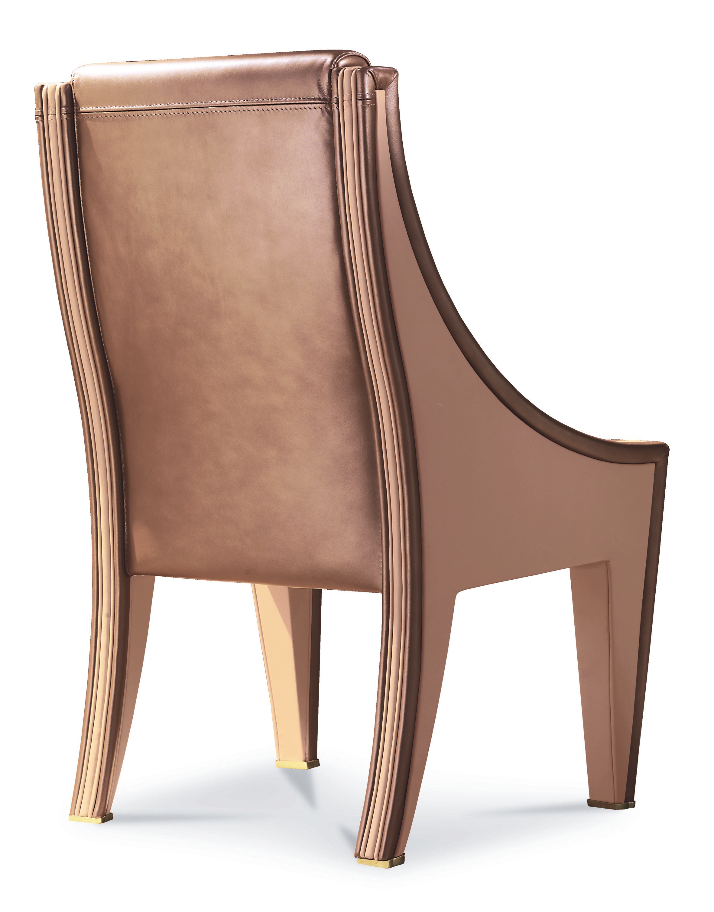The Orion chair from the Italian manufacturer Turri. The model with armrests, with high rectangular back. The frame is made from wood. Upholstery is of genuine leather. Filler - polyurethane foam. On the legs - decorative steel tips, painted in bronze. Colors to choose from, from a range of companies. Made a chair design, a perfect choice for the modern dining room and living room.