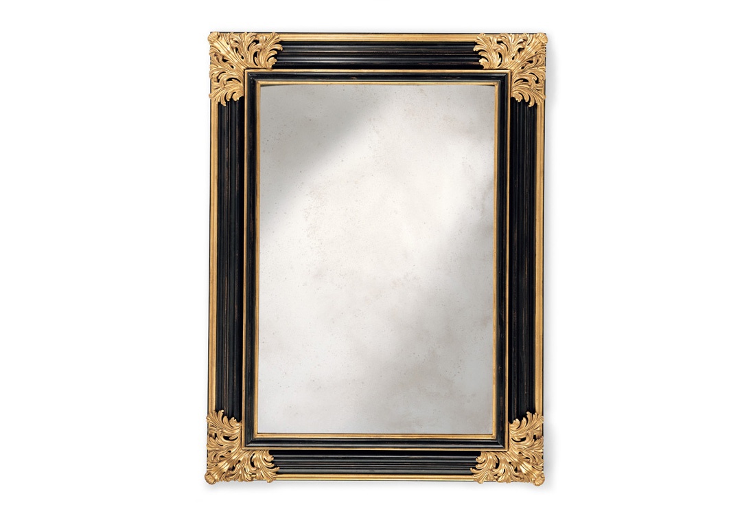 The mirror is from Italian producer Roberto Giovannini. Rectangular mirror in a frame made from solid wood, finish - ebony and gold. Colors to choose in stock. Carved decoration in the form of leaves - handmade. The mirror designed in classic style, the perfect balance between modernity and tradition. Gorgeous decoration for Your living room or dining room.