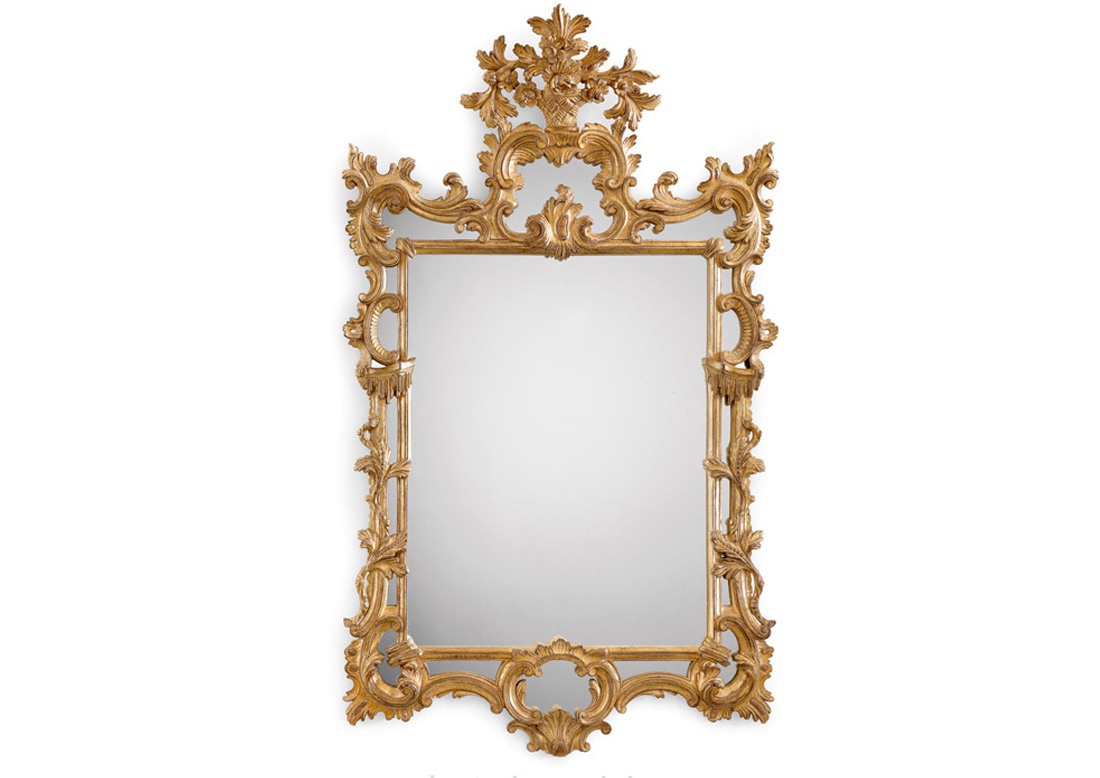 The mirror is from Italian producer Roberto Giovannini. The frame is made of wood. Finish - gold and artificial aging. Decorative elements - hand-carved. The model is made in classic style. Colours in stock. Mirror with decorative carvings is sure to complement your living room, takes in the era of the eighteenth century, of George II.