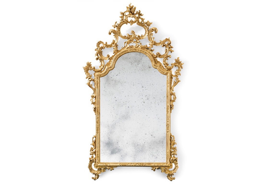 The mirror is from Italian producer Roberto Giovannini. The frame is made of wood. Finish - antique gold and artificial aging. Decorative elements and carving done by hand. The model is made in classic style, the era of the XVIII century. Colours in stock. Mirror with decorative carving beautifully adorn your interior living room.