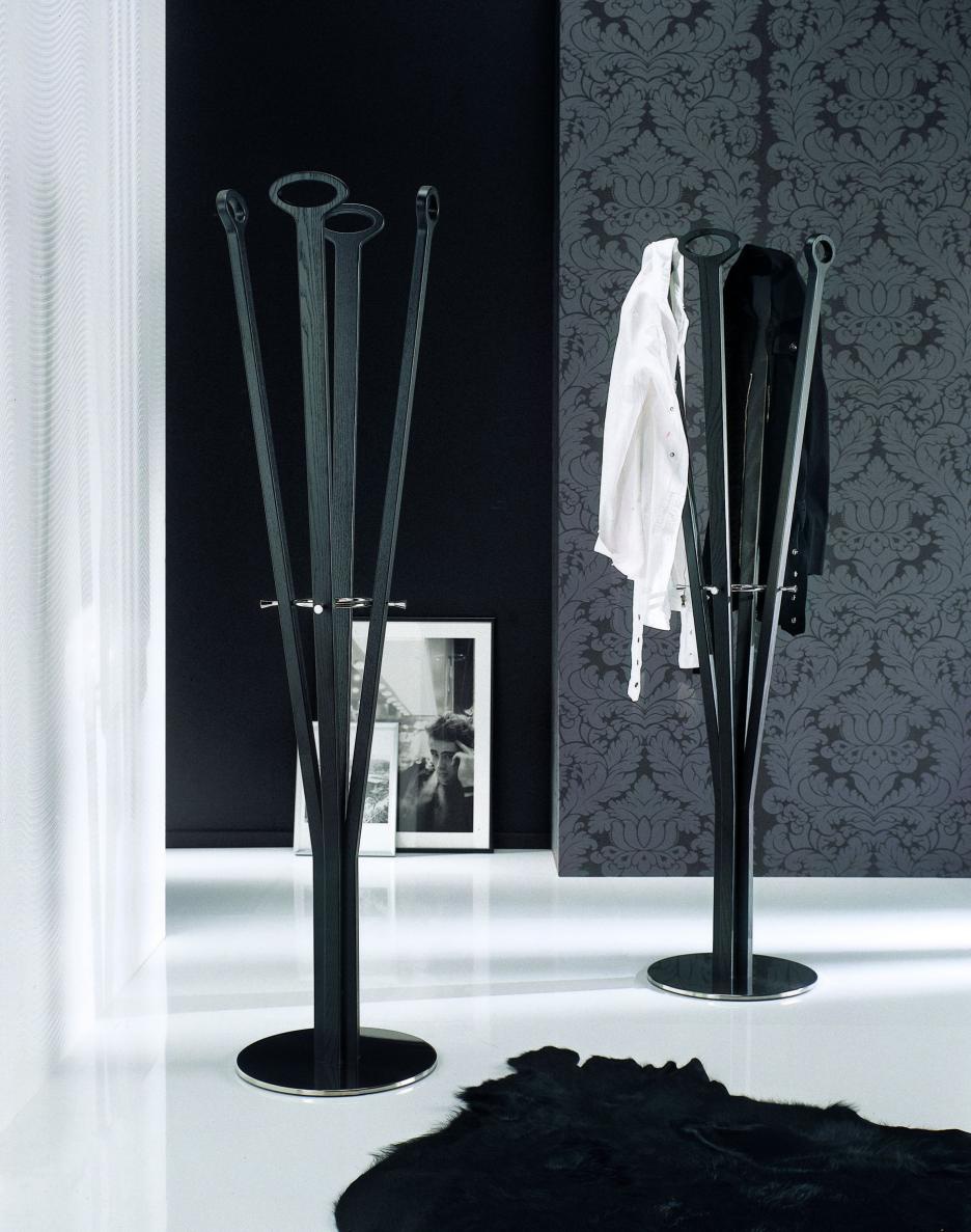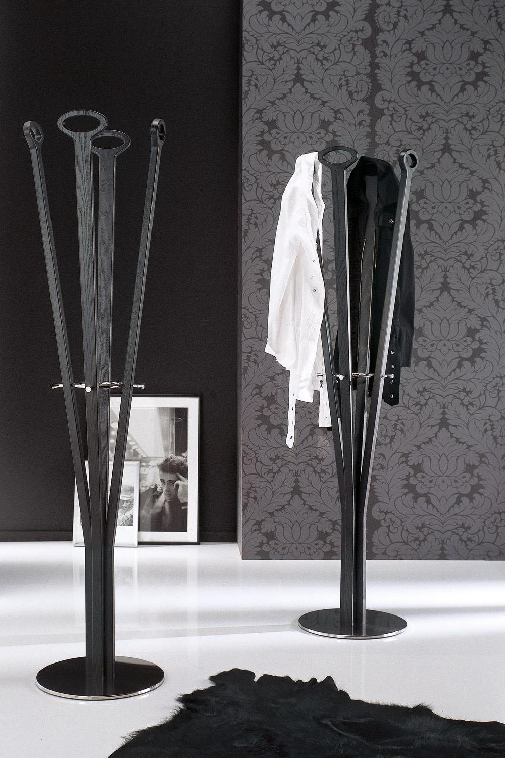 | Description: | A clothes hanger. Made of solid ash wood on a round base made of chrome plated steel. Finishing Wenge. |