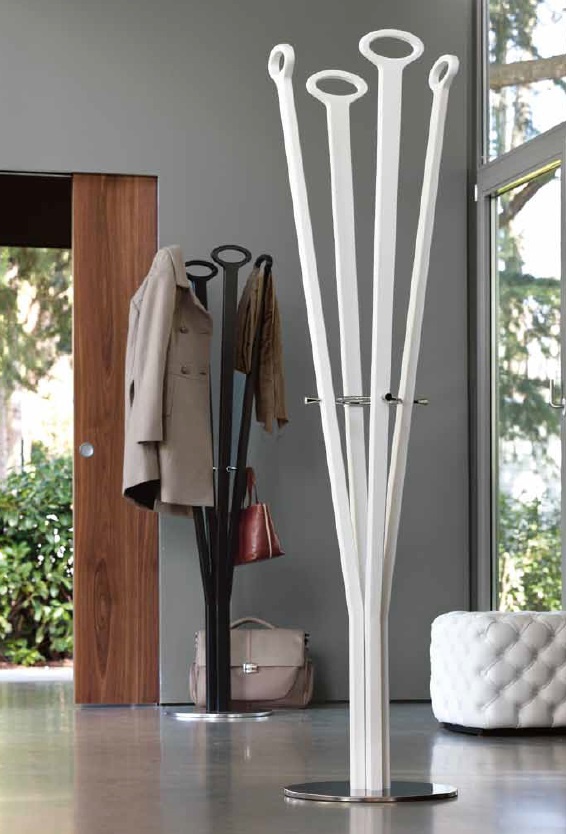 Hanger Appiglio from the Italian manufacturer Porada. Outdoor clothes hanger on a round base-plate in chromed metal. Made of solid ash, stained oak, oak wenge, walnut, or painted, not closing the pores of the wood.