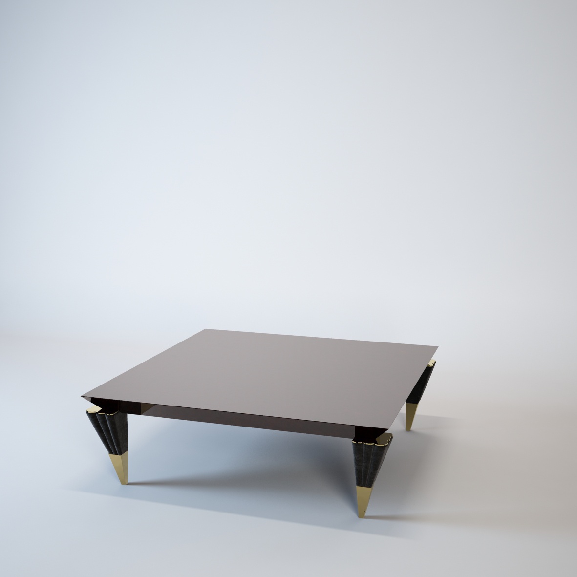 The Orion coffee table from the Italian manufacturer Turri. The manufacturer offers 2 models to choose from, rectangular and square shaped table tops. The structure of wood, lacquer glossy surface finish. Colors - in stock. There are metal parts. Legs decorated leather. The product will decorate the living room in a modern style. A table is included in living room set collection Orion.