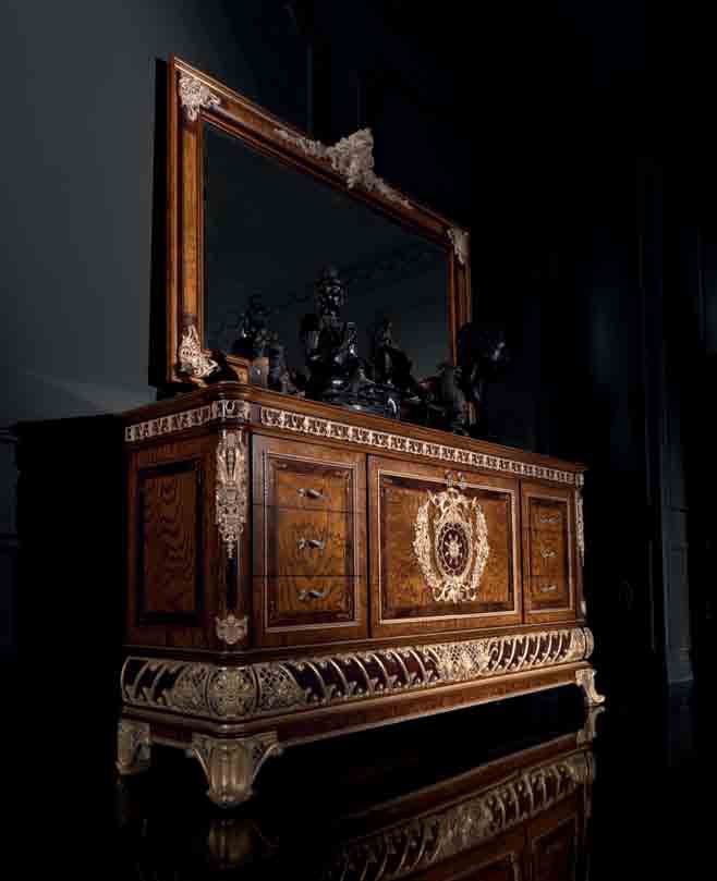 The buffet from the Italian manufacturer Jumbo Collection. Original model in a classical style, collection Opera. Frame made of natural wood of hard sorts, of particular importance is the use of high quality veneer dark or light shades. Decorative elements are carved, handmade. Varnishing is made with antique wax.