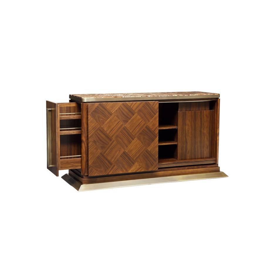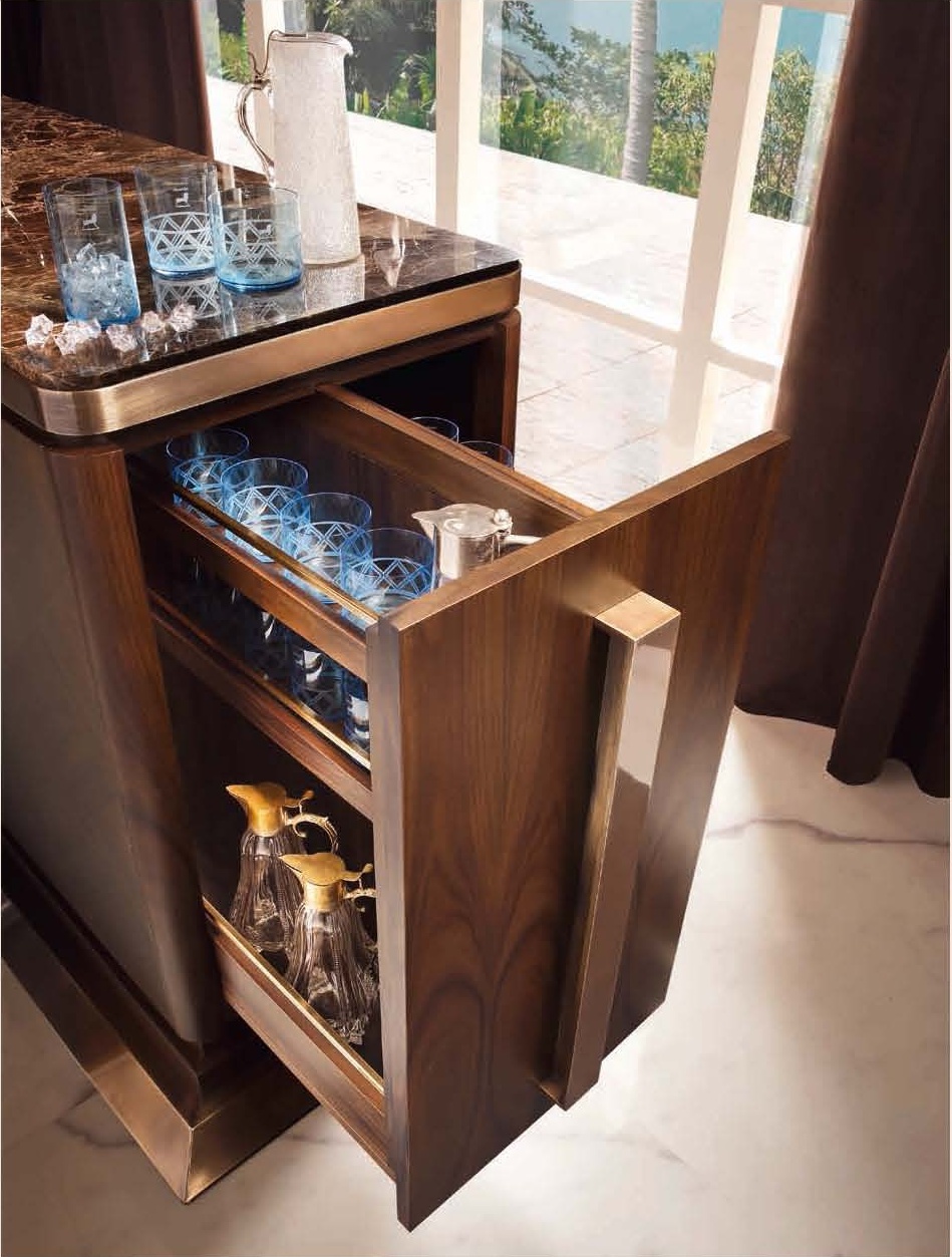 Bar table wooden with marble top from Harrys Italian manufacturer Smania. The model is made in art Deco style. The frame is made of wood, finish options: wenge, walnut, rosewood. Marble. Bar has pull-out container for bottles, drawers and shelves. Harrys bar is a chic and fashionable piece of furniture, a real work of art for Your living room.